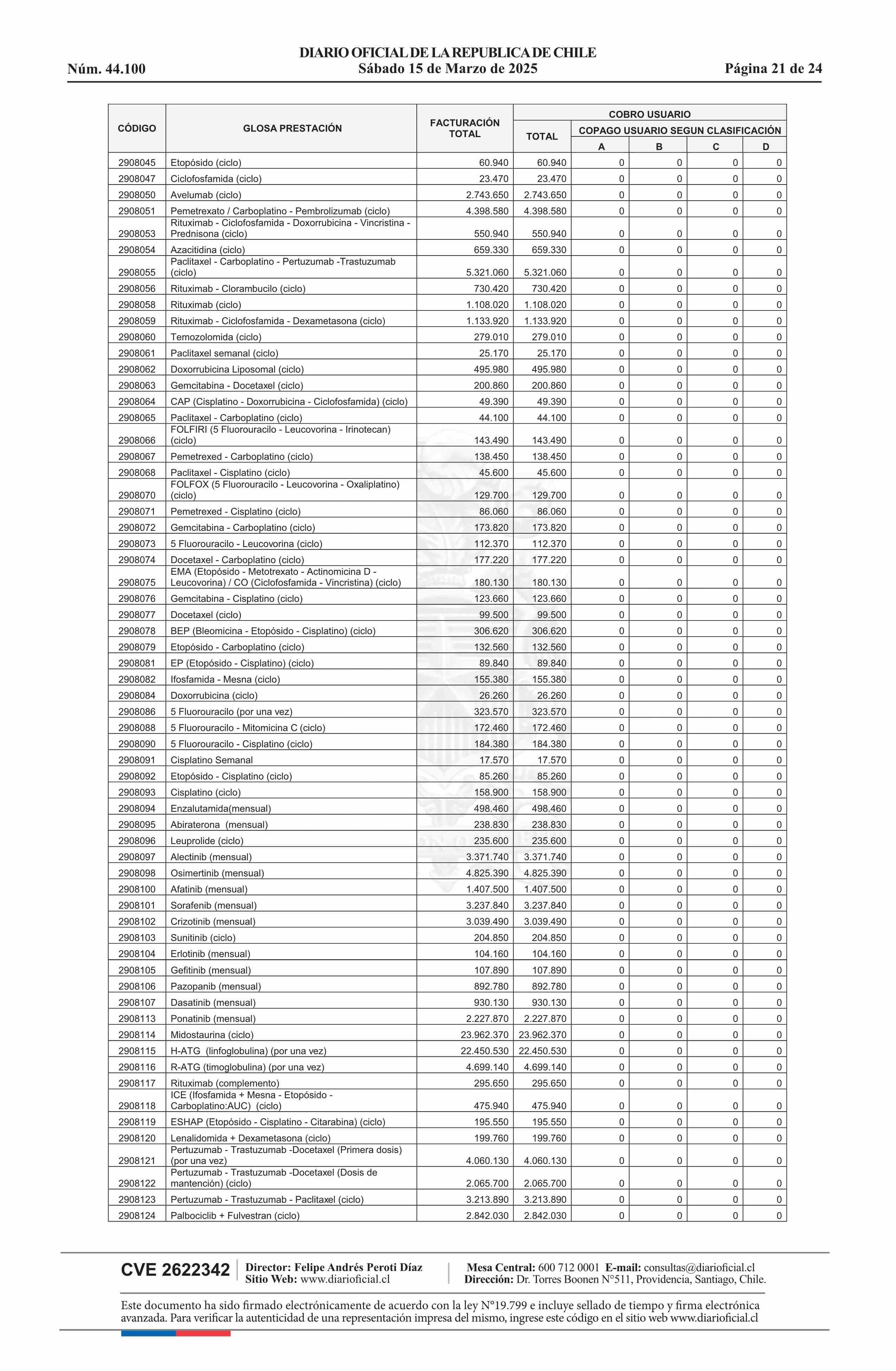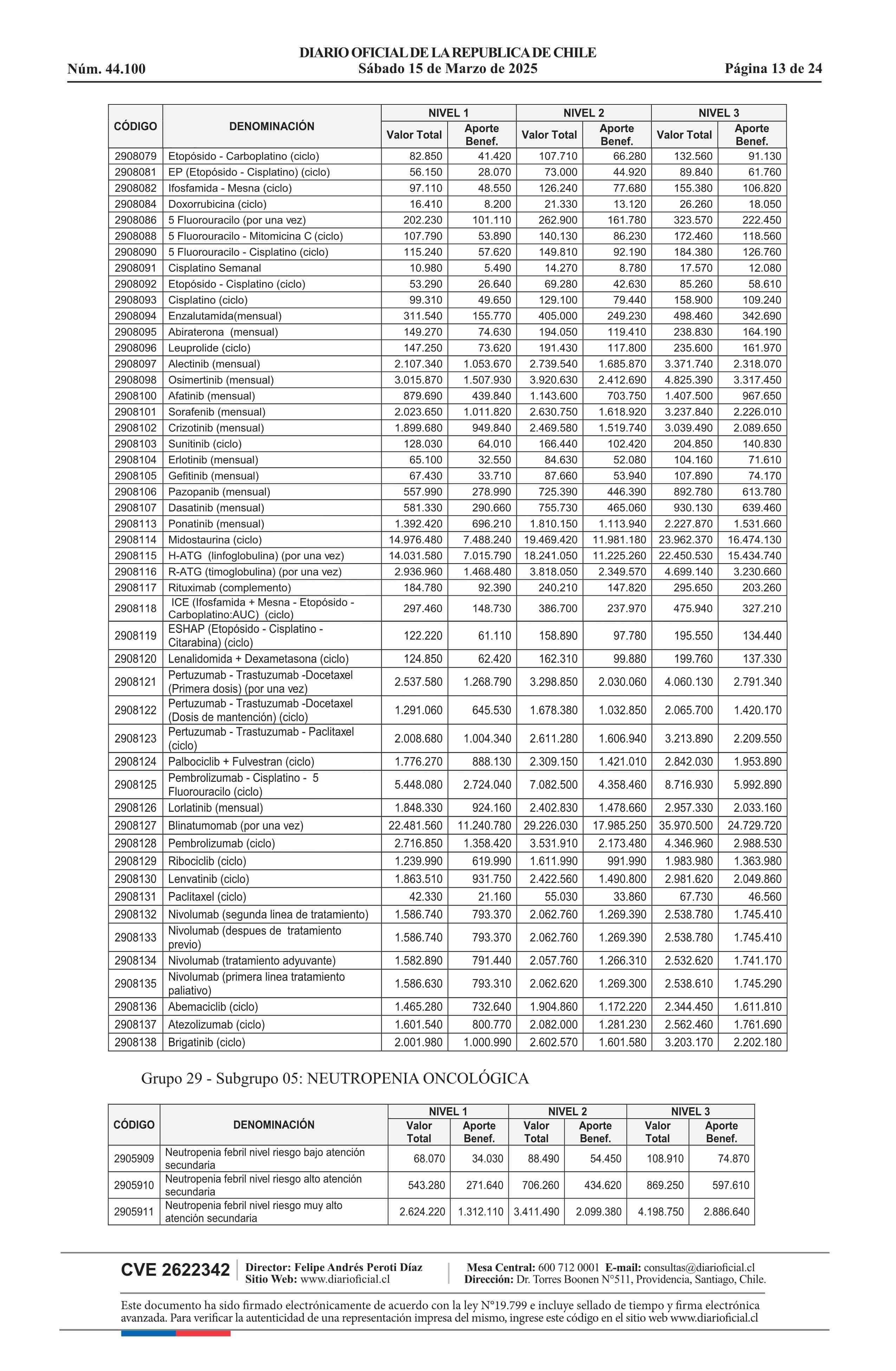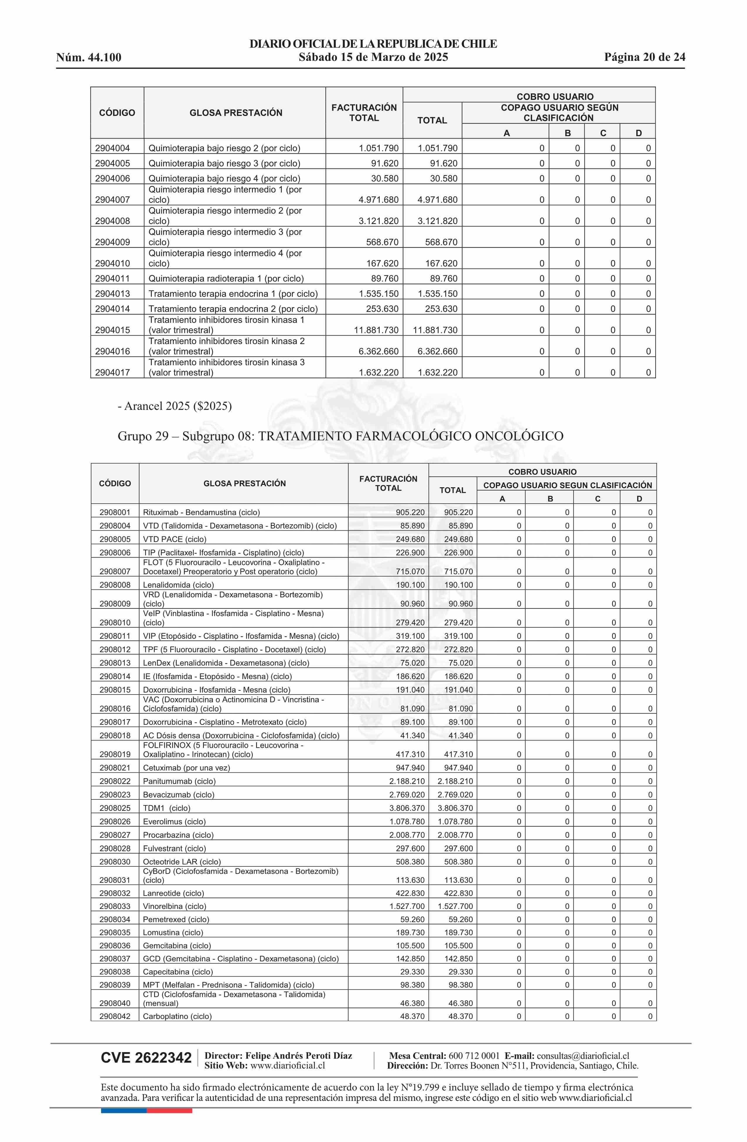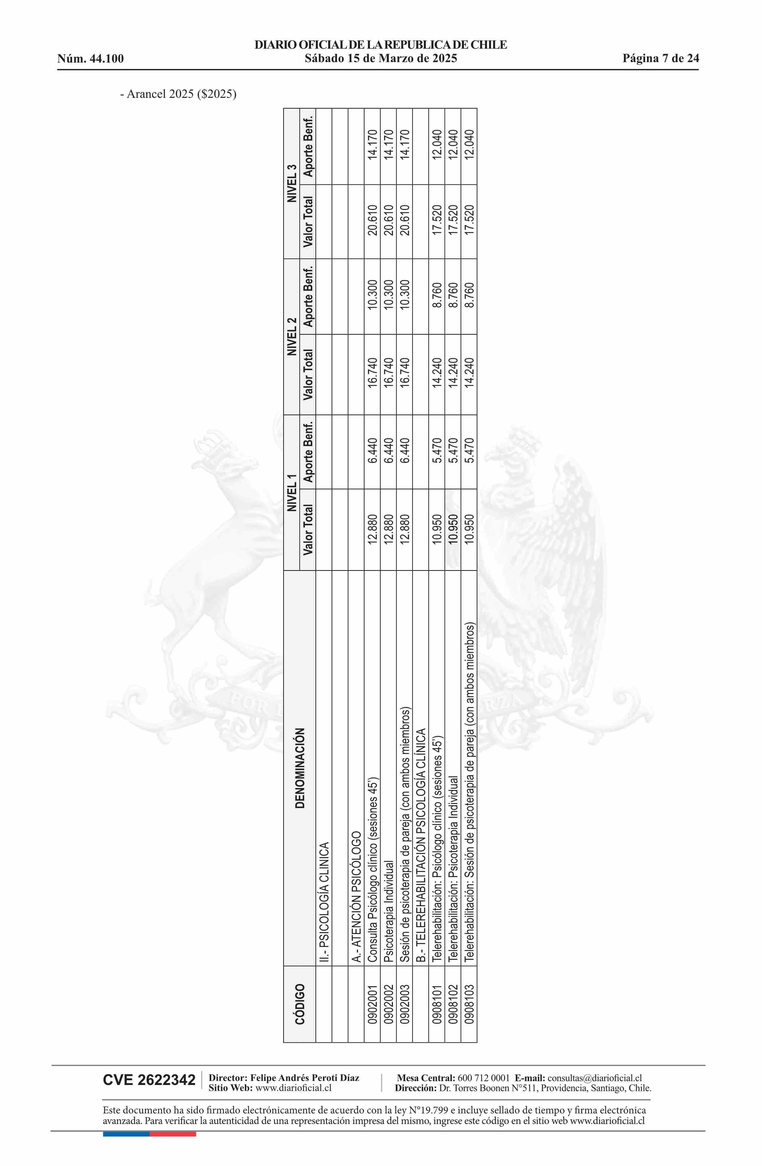 Resolución exenta número 173, de 2025.- Modifica resolución N° 176 exenta, de 1999, que aprueba el Arancel de Prestaciones de Salud, del decreto con fuerza de ley N° 1 de 2005 15-03-2025 Diario Oficial Edición Electrónica |