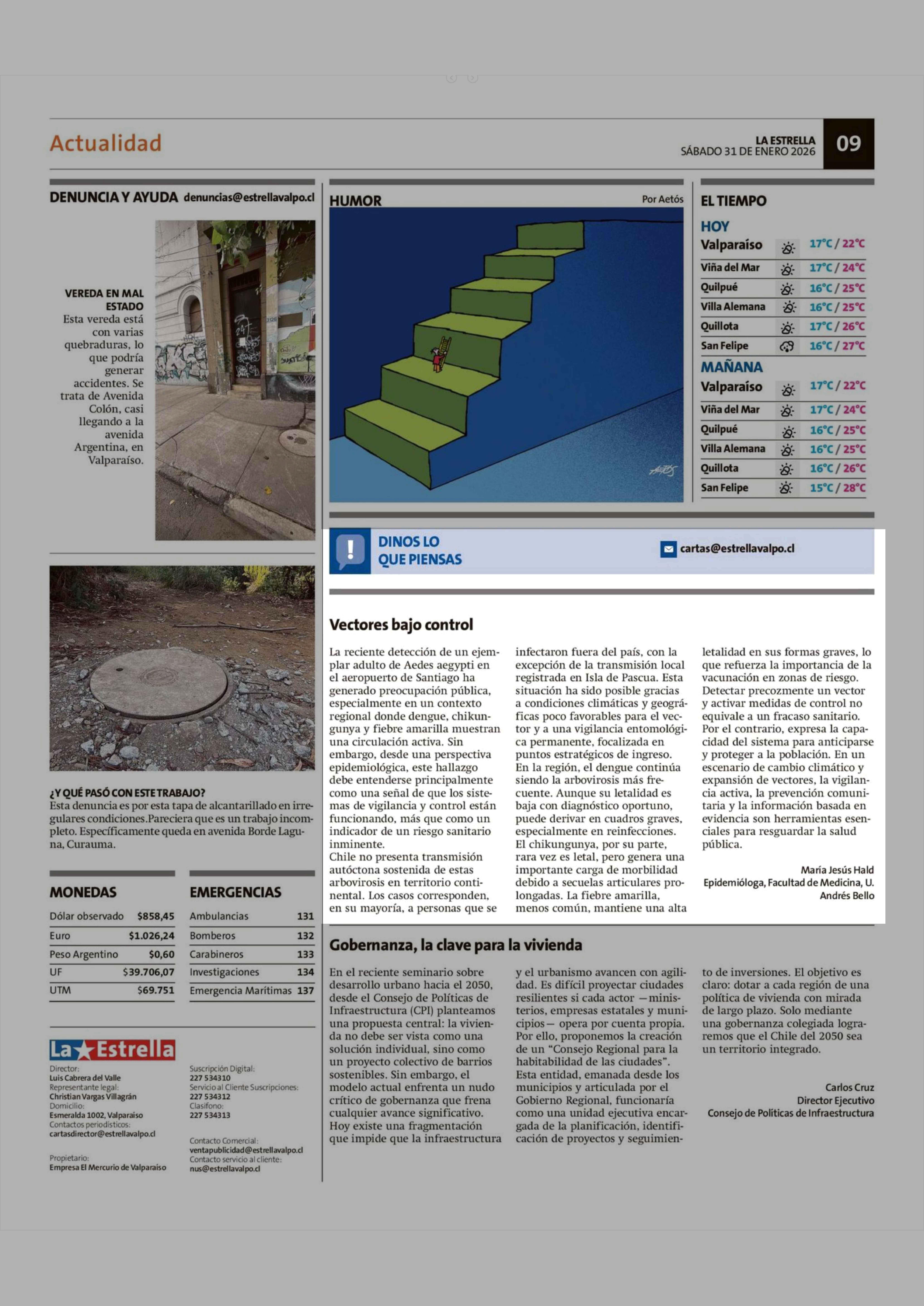 Cartas: Vectores bajo control 31-01-2026 La Estrella de Valparaíso |