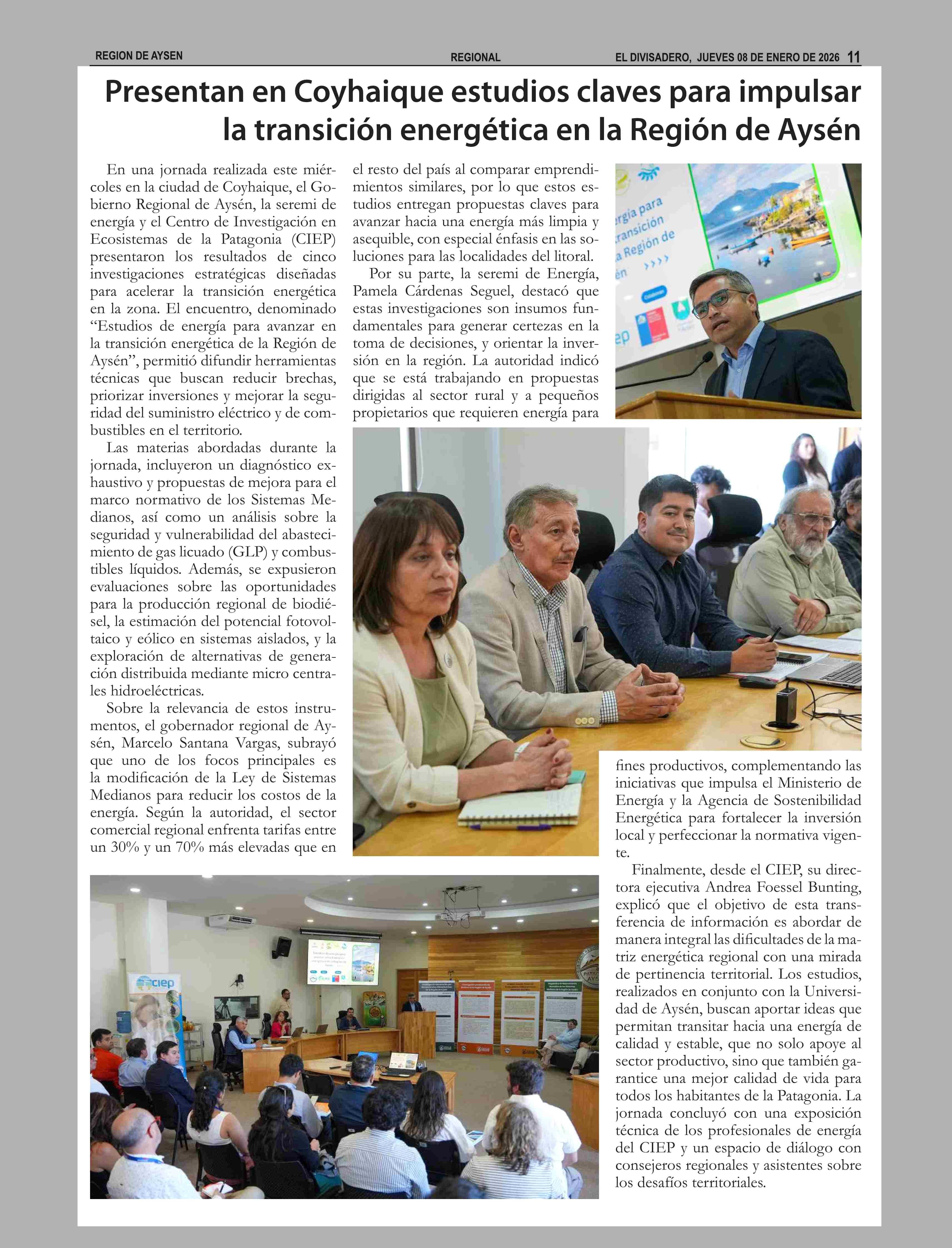 Presentan en Coyhaique estudios claves para impulsar la transición energética en la Región de Aysén 08-01-2026 El Divisadero |