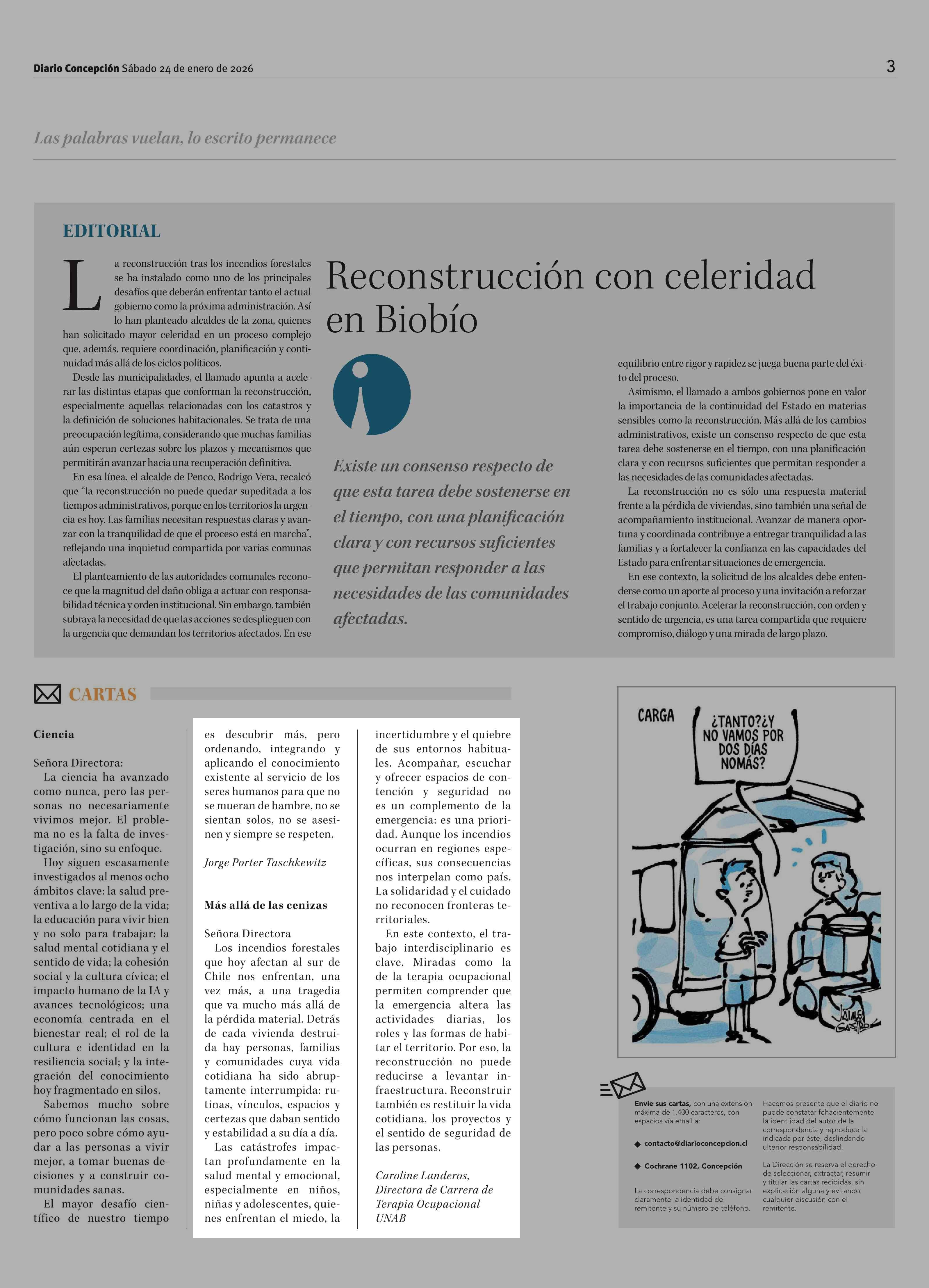 Cartas: Más allá de las cenizas 24-01-2026 Diario Concepción |