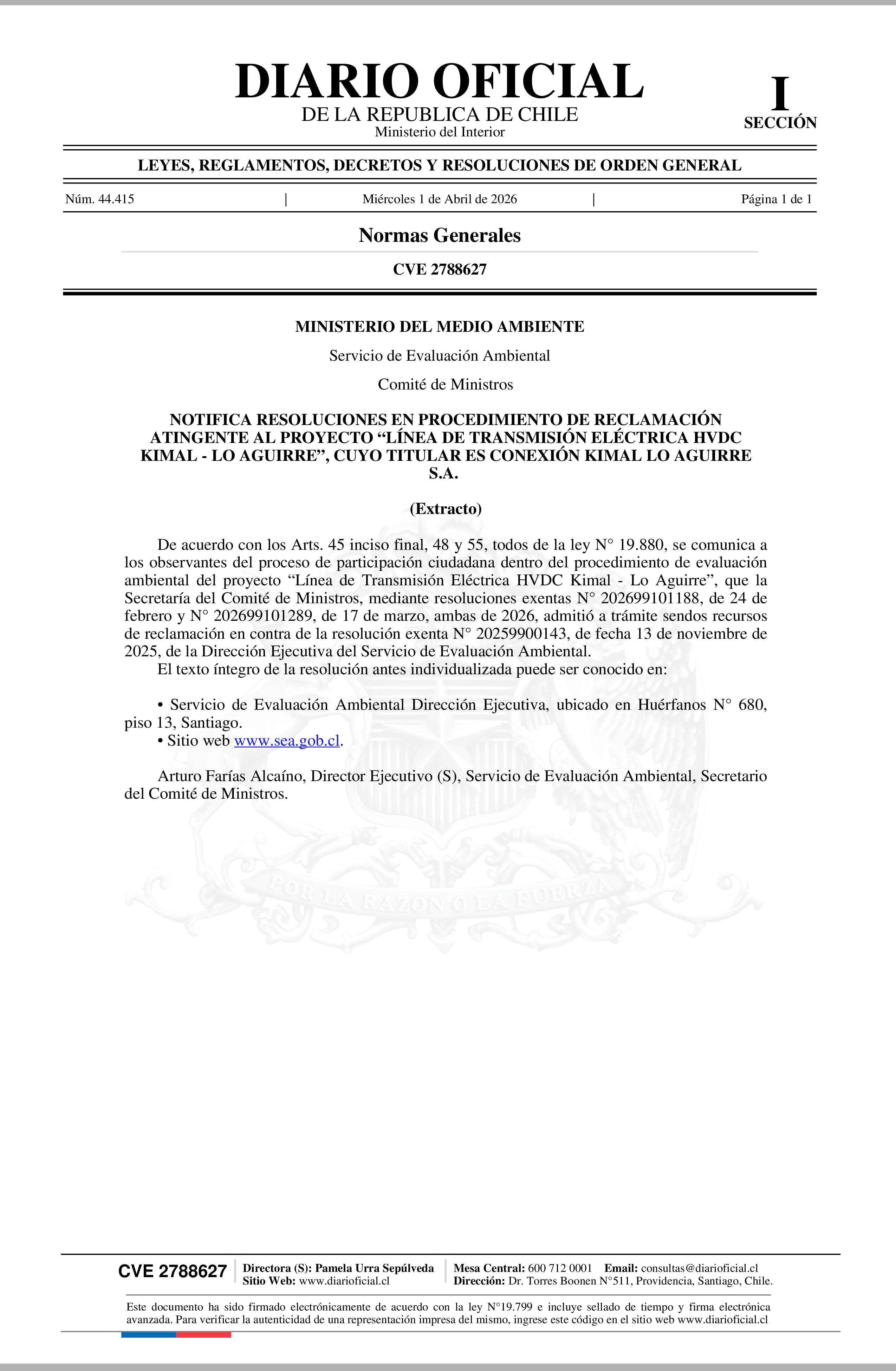 Fuente: Diario Oficial Edición Electrónica (Diario Oficial Edición Electrónica) Página(s): 1