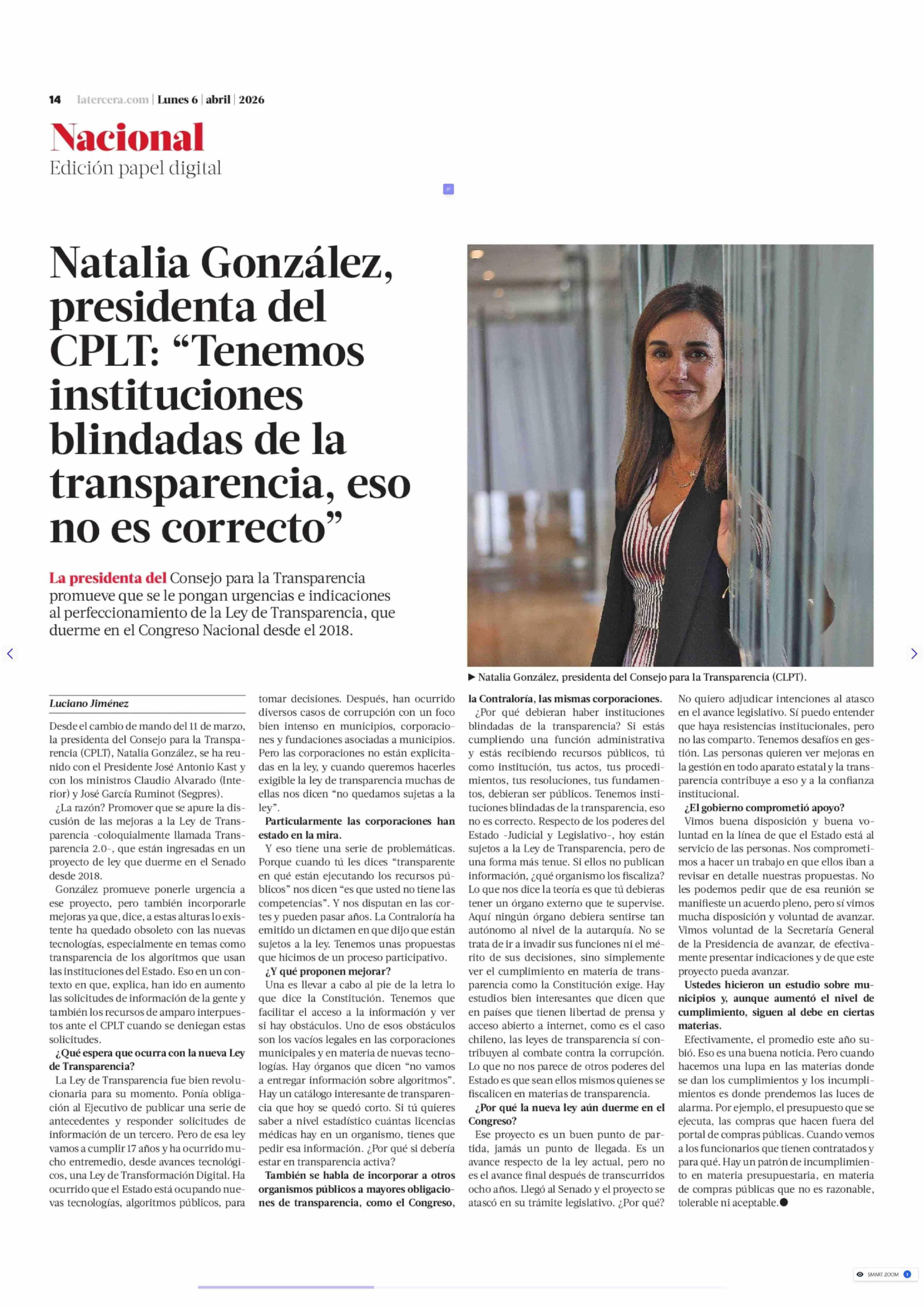 Título: Natalia González, presidenta del CPLT: "Tenemos instituciones blindadas de la transparencia, eso no es correcto"