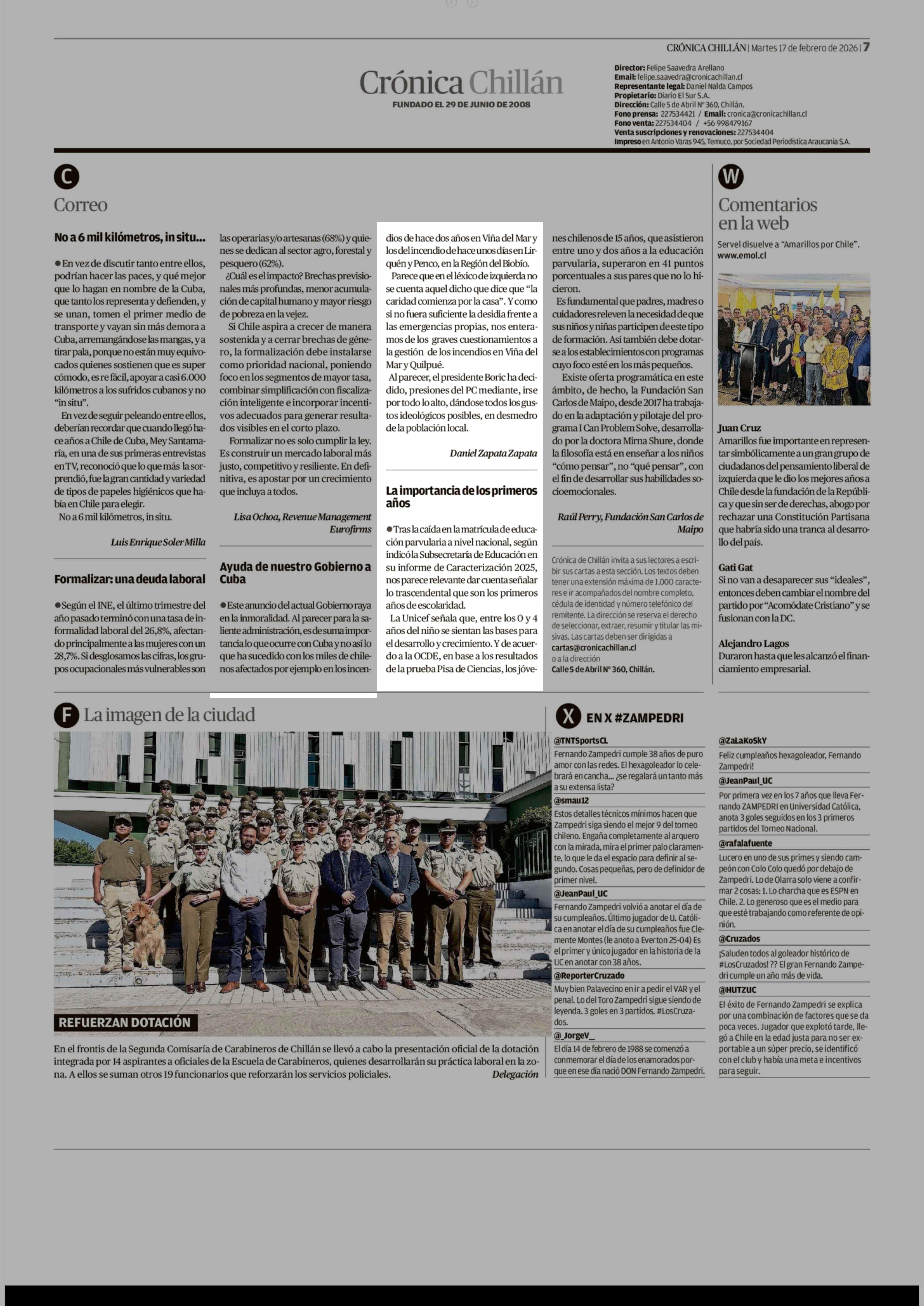 Fecha: 17-02-2026 Sector: Cartas Región: Región del Ñuble