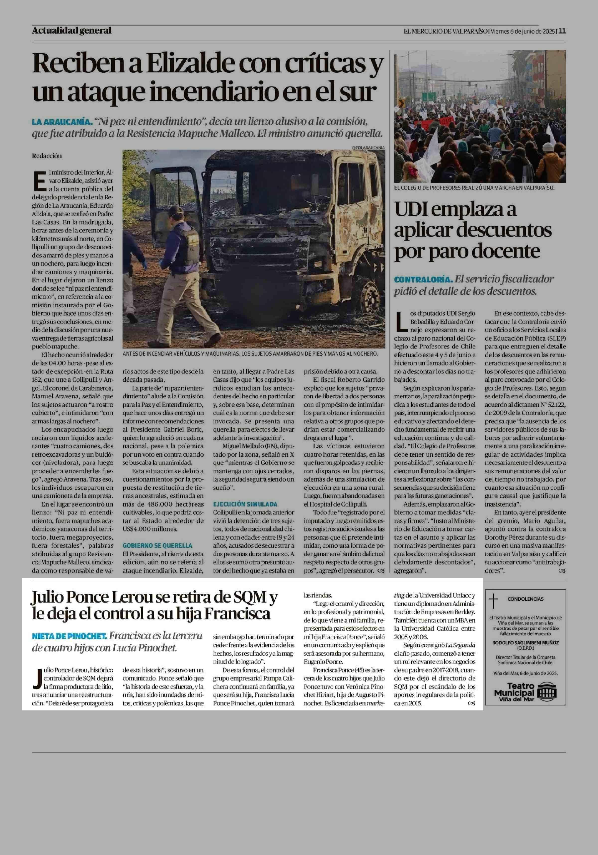 Julio Ponce Lerou se retira de SOM y le deja el control a su hija Francisca 06-06-2025 El Mercurio de Valparaíso |