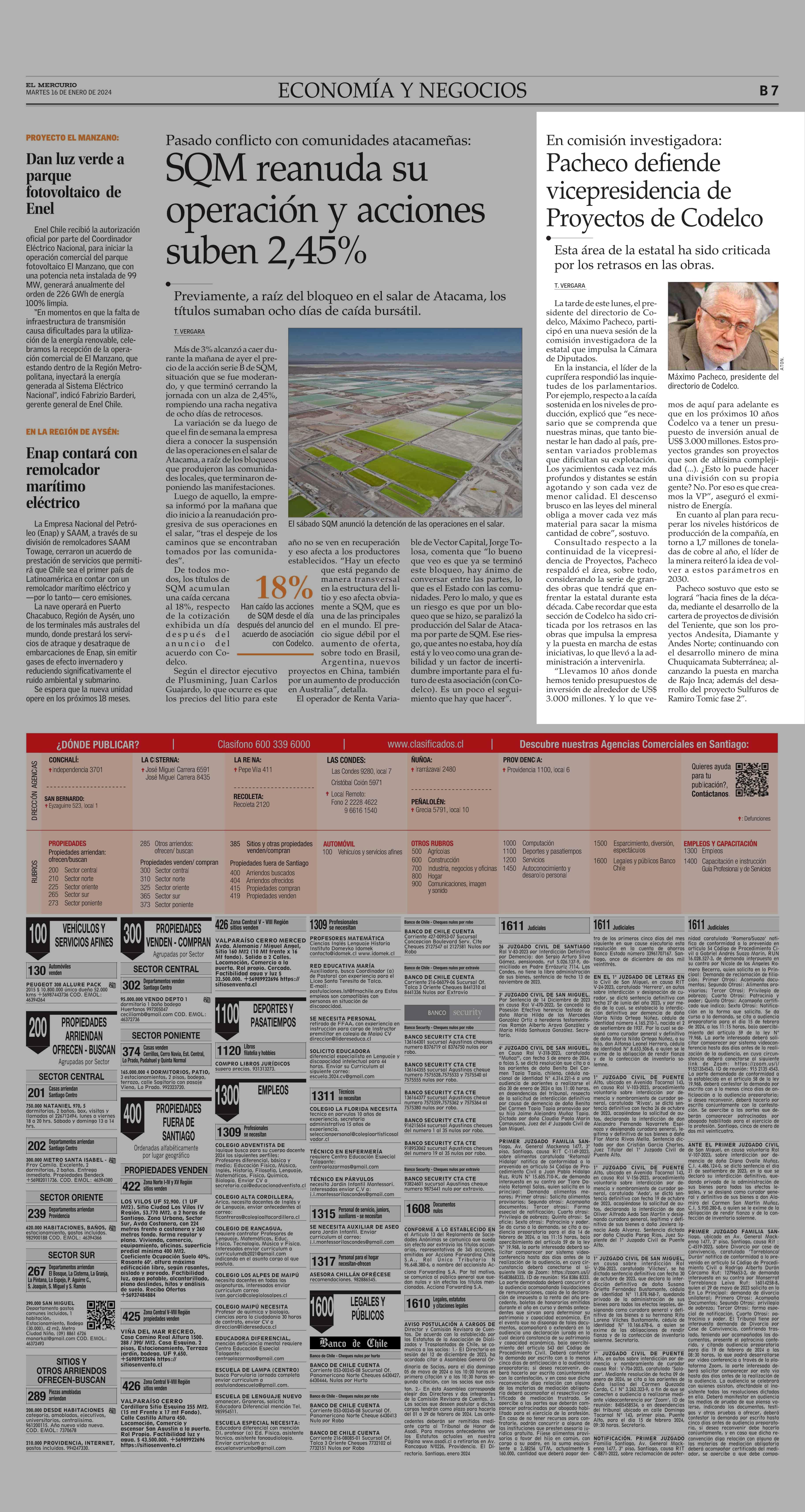 Pacheco defiende vicepresidencia de Proyectos de Codelco 16-01-2024 El Mercurio |