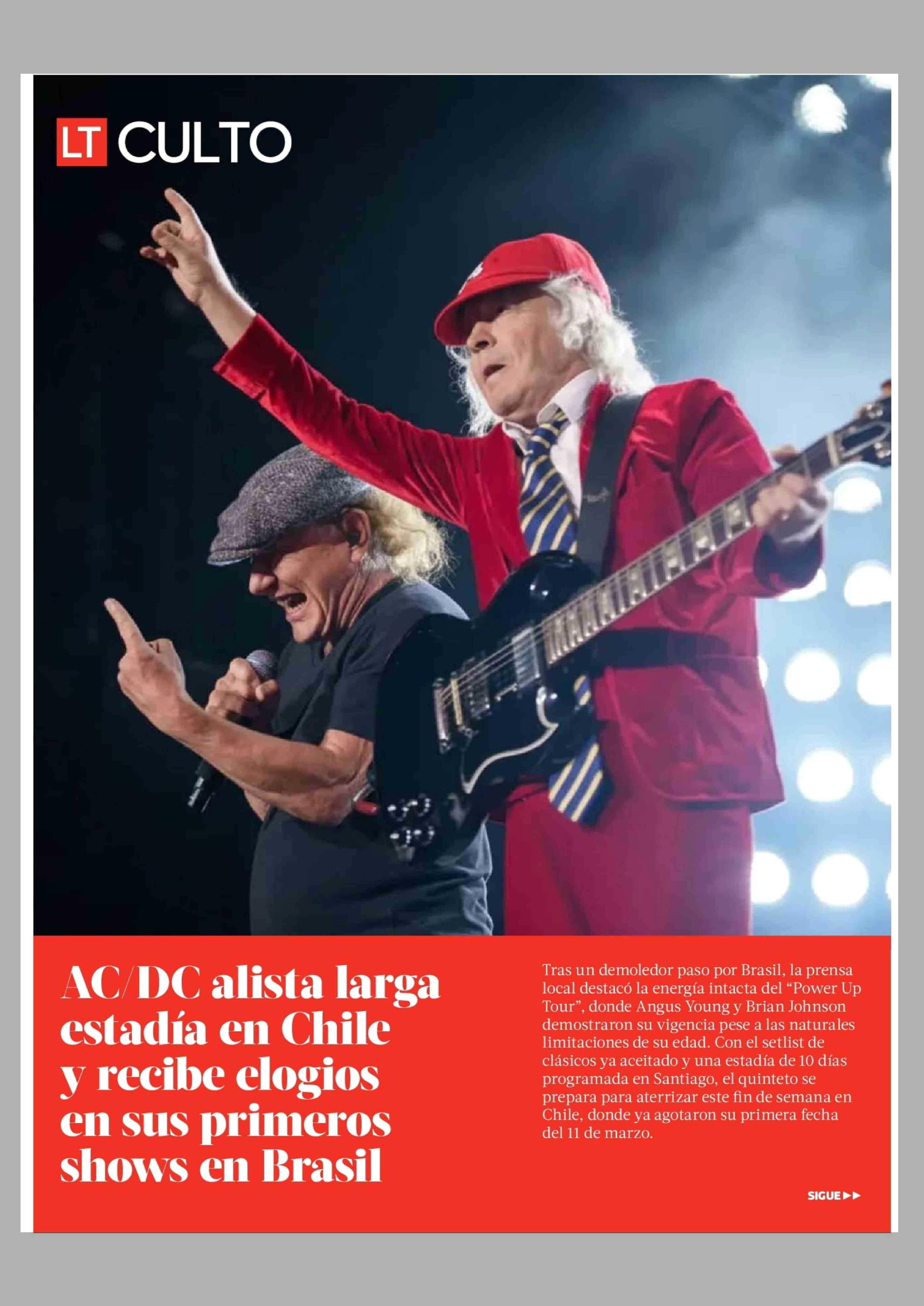 AC/DC alista larga estadía en Chile y recibe elogios en sus primeros shows en Brasil 06-03-2026 La Tercera |