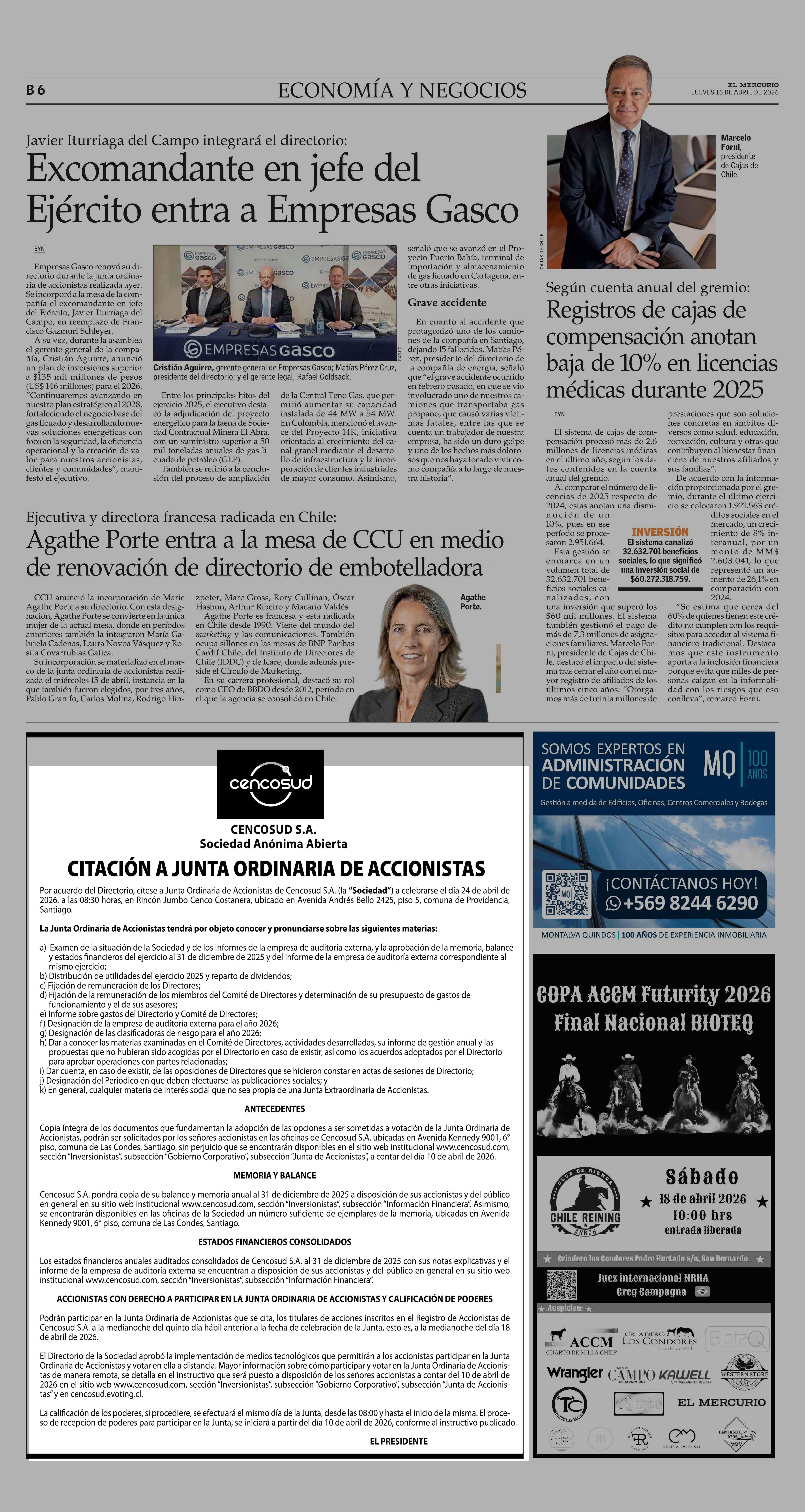Extractos: CENCOSUD S.A. 16-04-2026 El Mercurio |