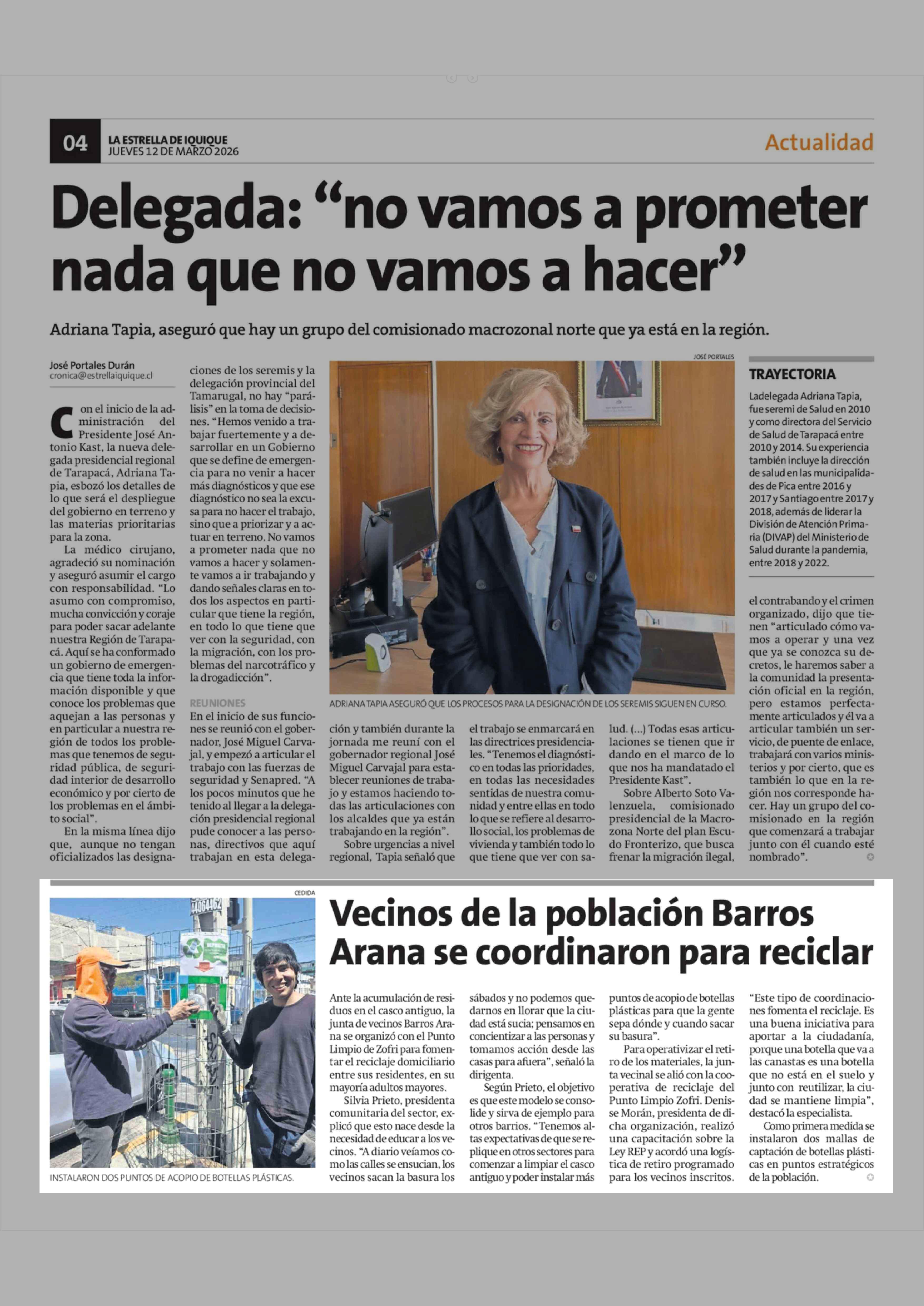 Vecinos de la población Barros Arana se coordinaron para reciclar 12-03-2026 La Estrella de Iquique |