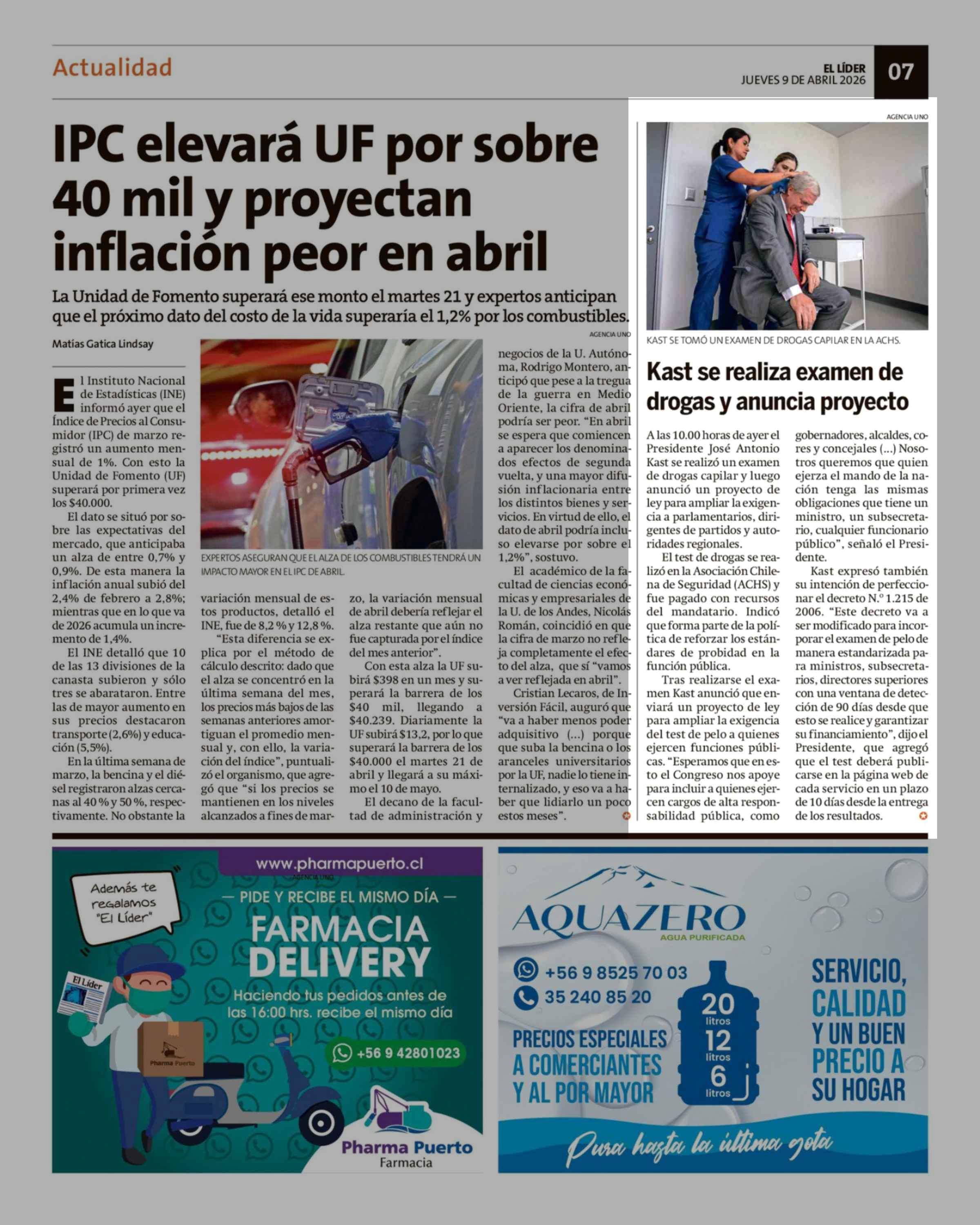 Kast se realiza examen de drogas y anuncia proyecto 09-04-2026 El Líder |