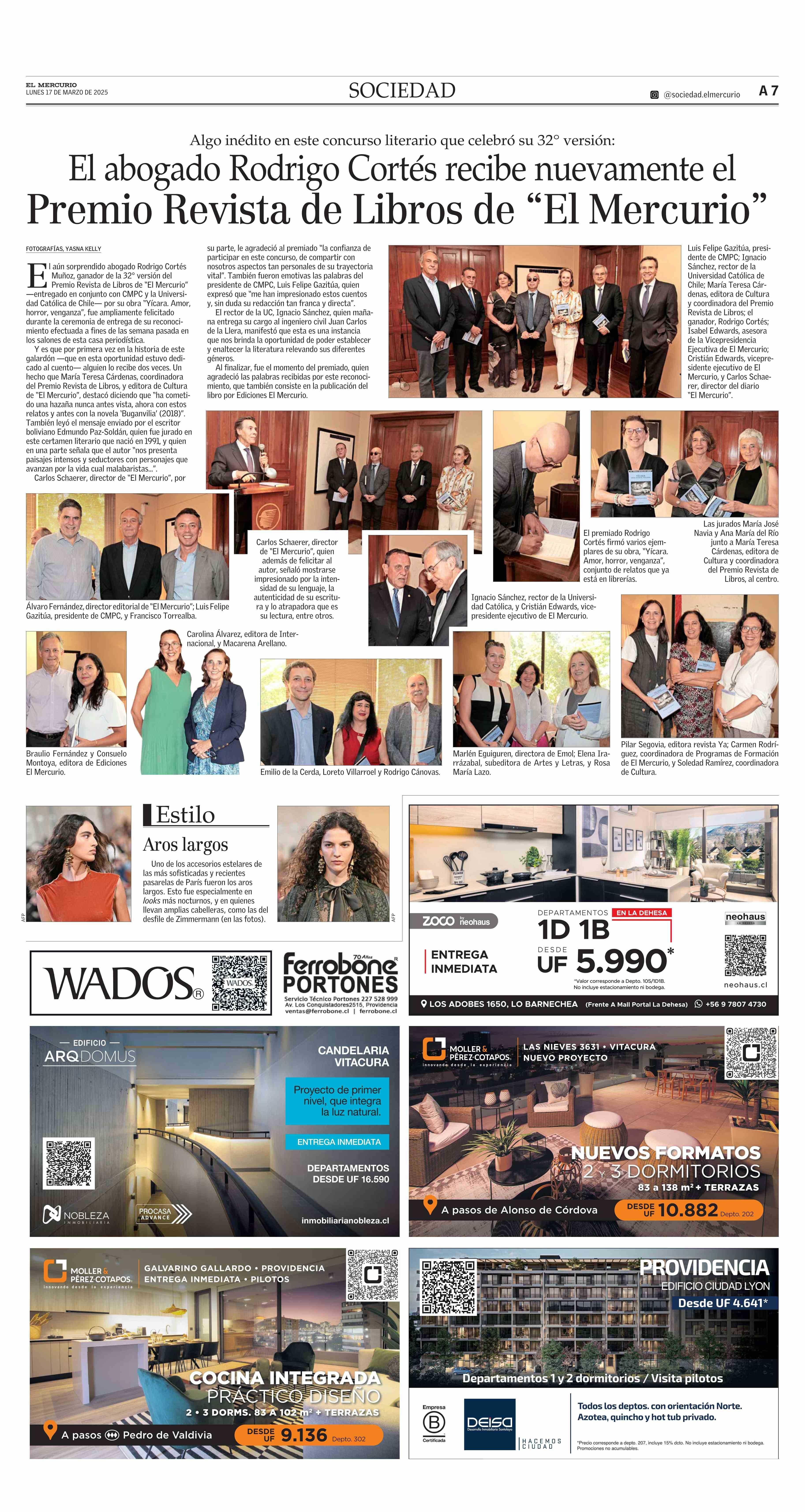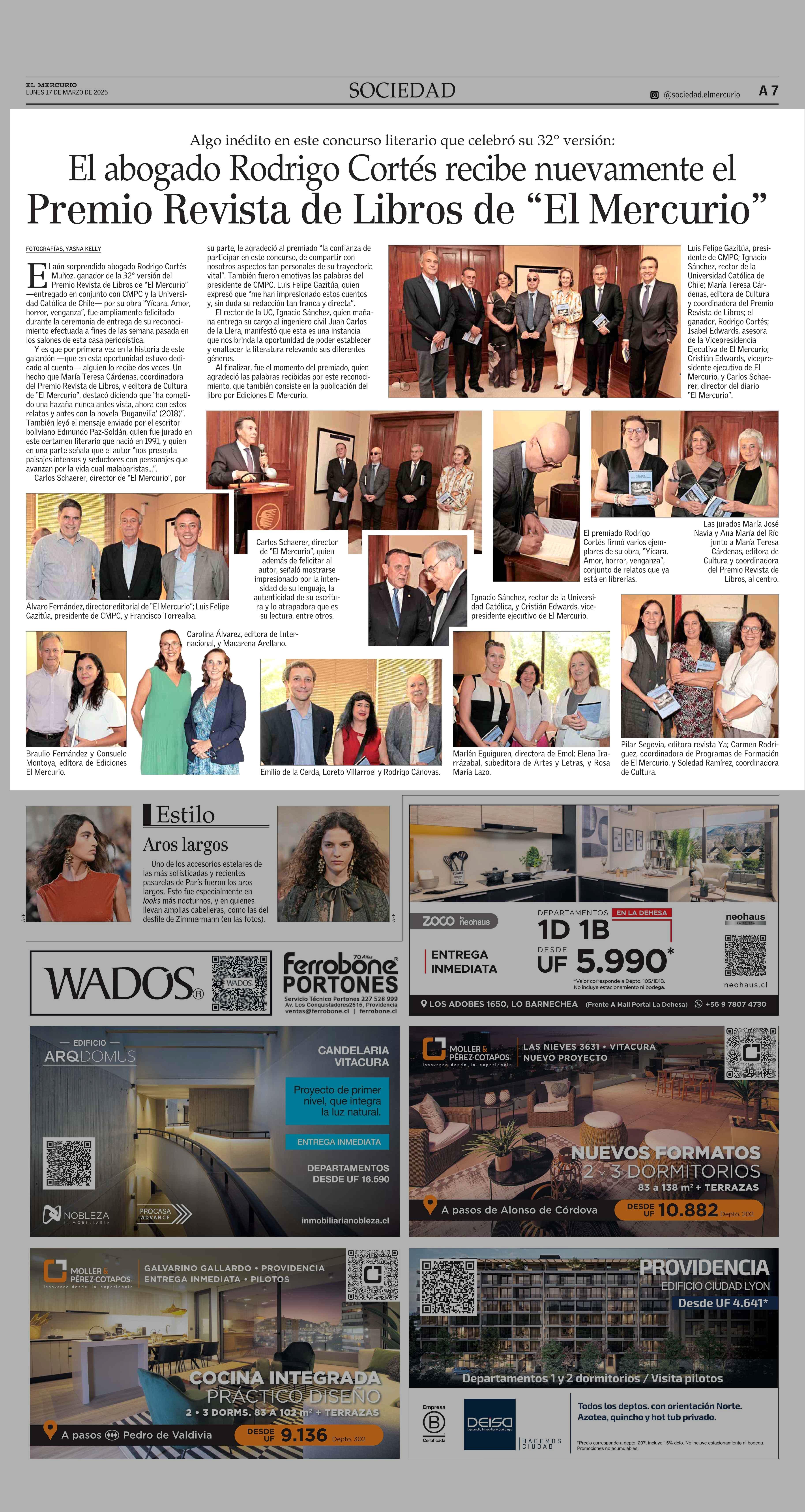 El abogado Rodrigo Cortés recibe nuevamente el Premio Revista de Libros de “El Mercurio” 17-03-2025 El Mercurio |