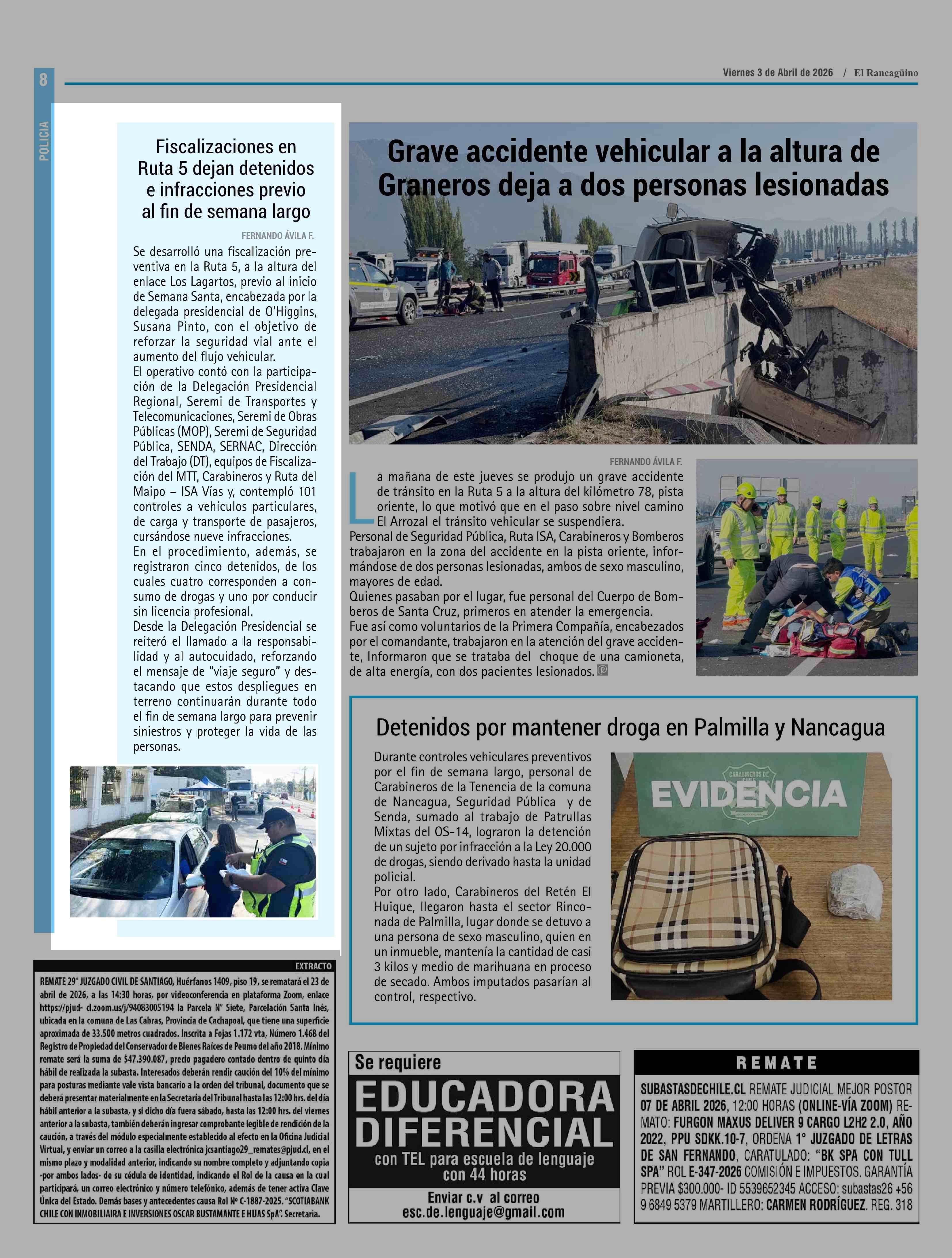 | Fecha: | 03-04-2026 | Sector: | Noticia general | Región: | Región del Libertador General Bernardo O'Higgins |