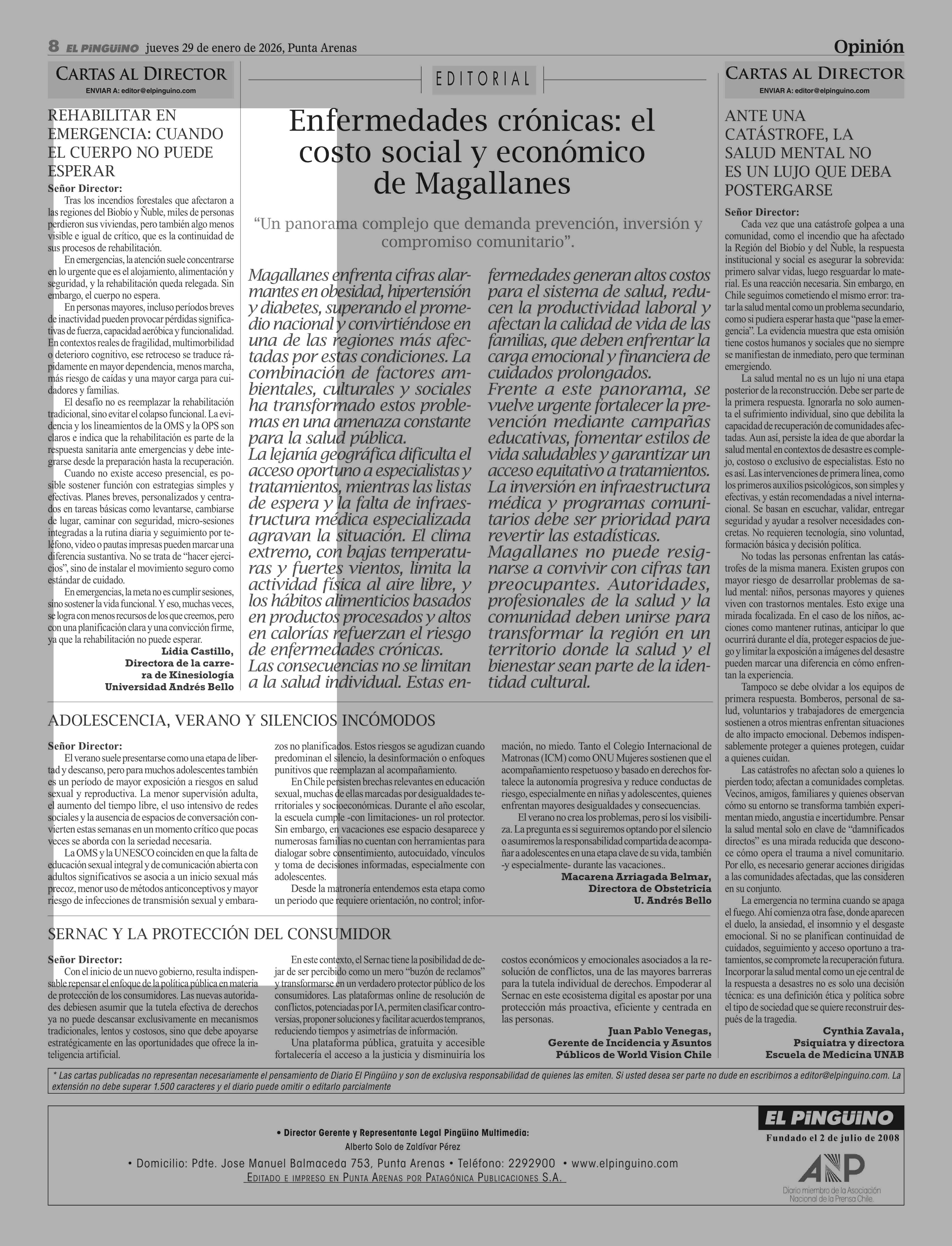 Cartas: REHABILITAR EN EMERGENCIA: CUANDO EL CUERPO NO PUEDE ESPERAR 29-01-2026 El Pingüino |