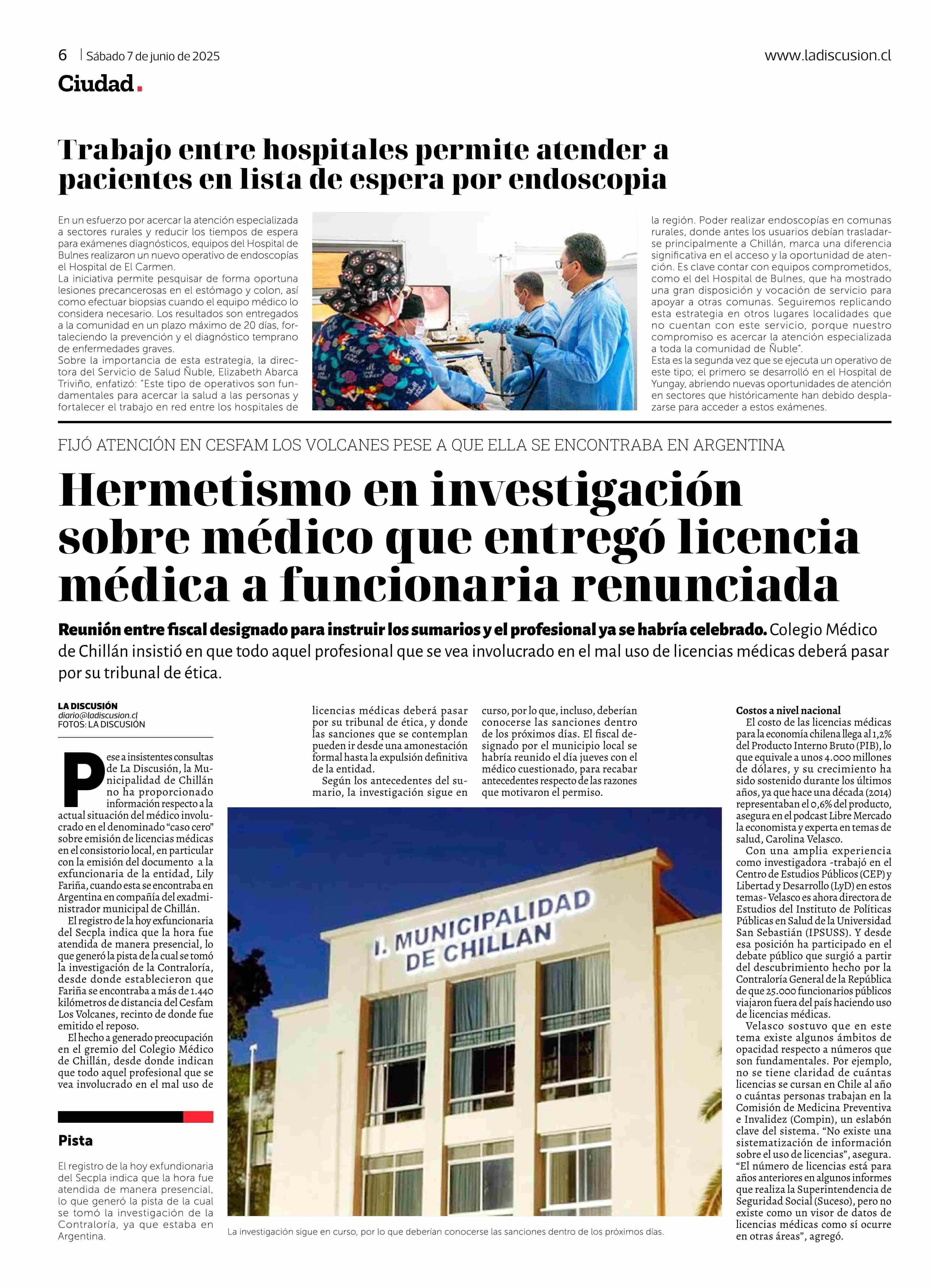 Hermetismo en investigación sobre médico que entregó licencia médica a funcionaria renunciada 07-06-2025 La Discusión |