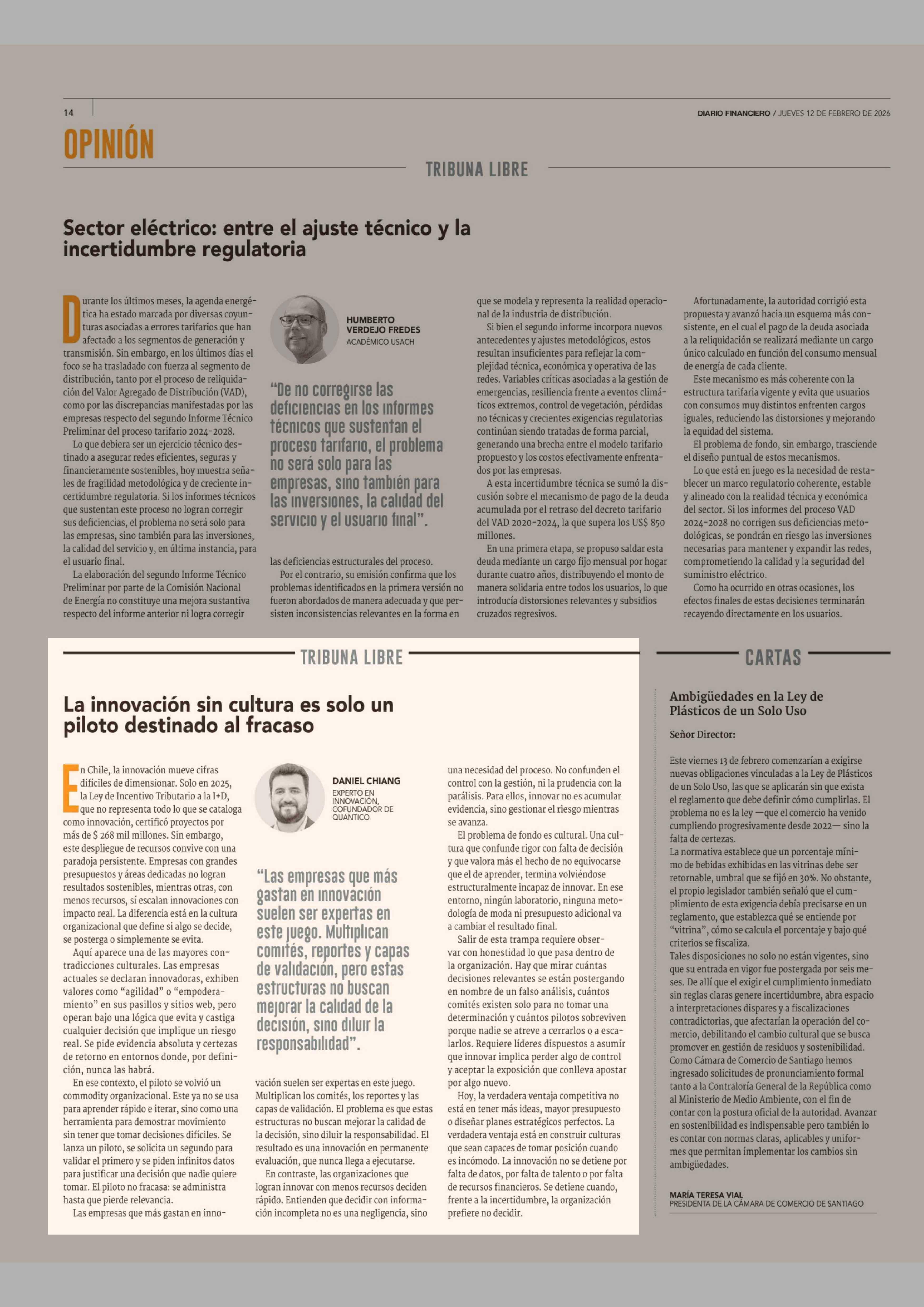 Columnas de Opinión: La innovación sin cultura es solo un piloto destinado al fracaso 12-02-2026 Diario Financiero |