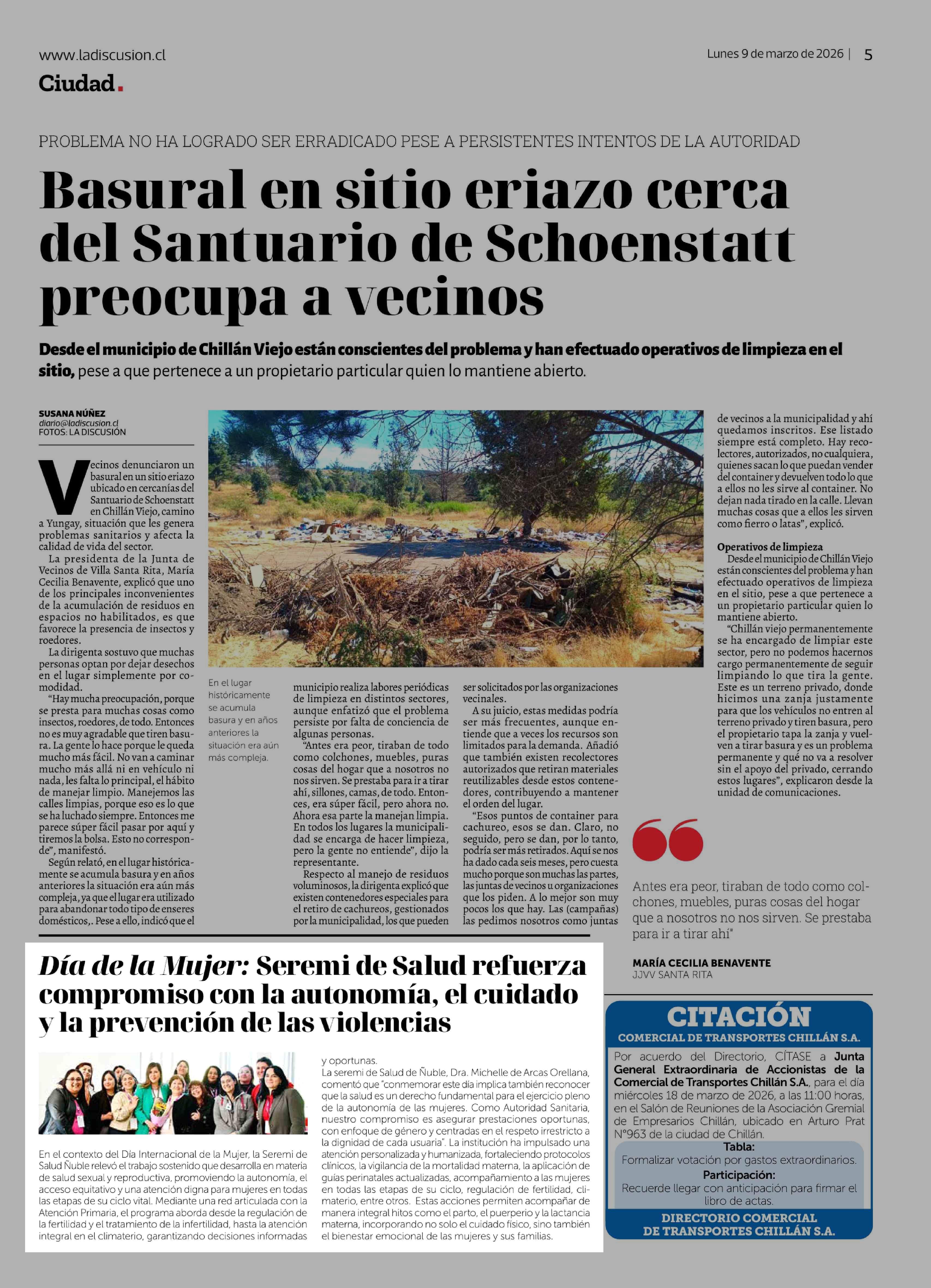 Fecha: 09-03-2026 Sector: Noticia general Región: Región del Ñuble