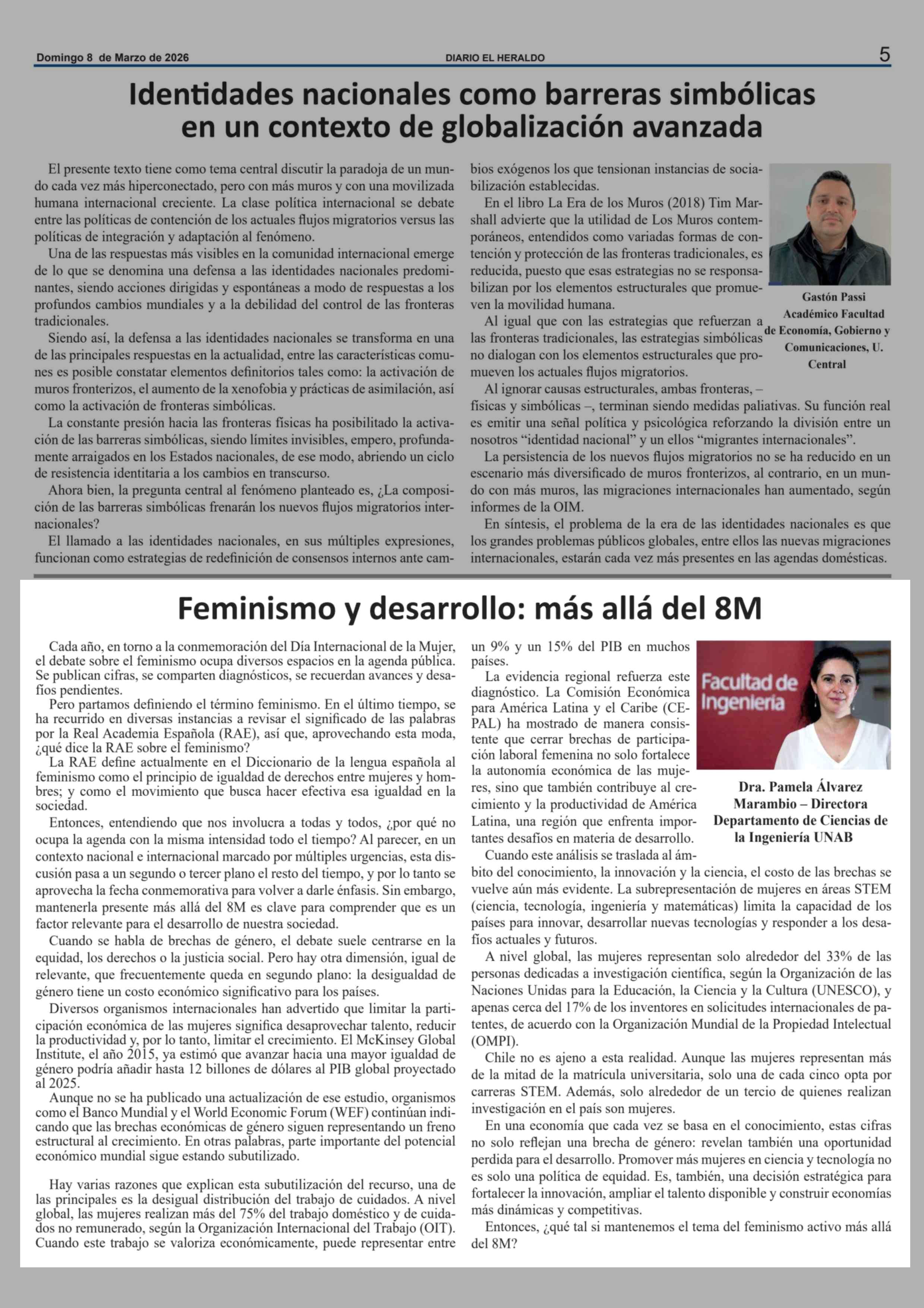 Columnas de Opinión: Feminismo y desarrollo: más allá del 8M 08-03-2026 El Heraldo |