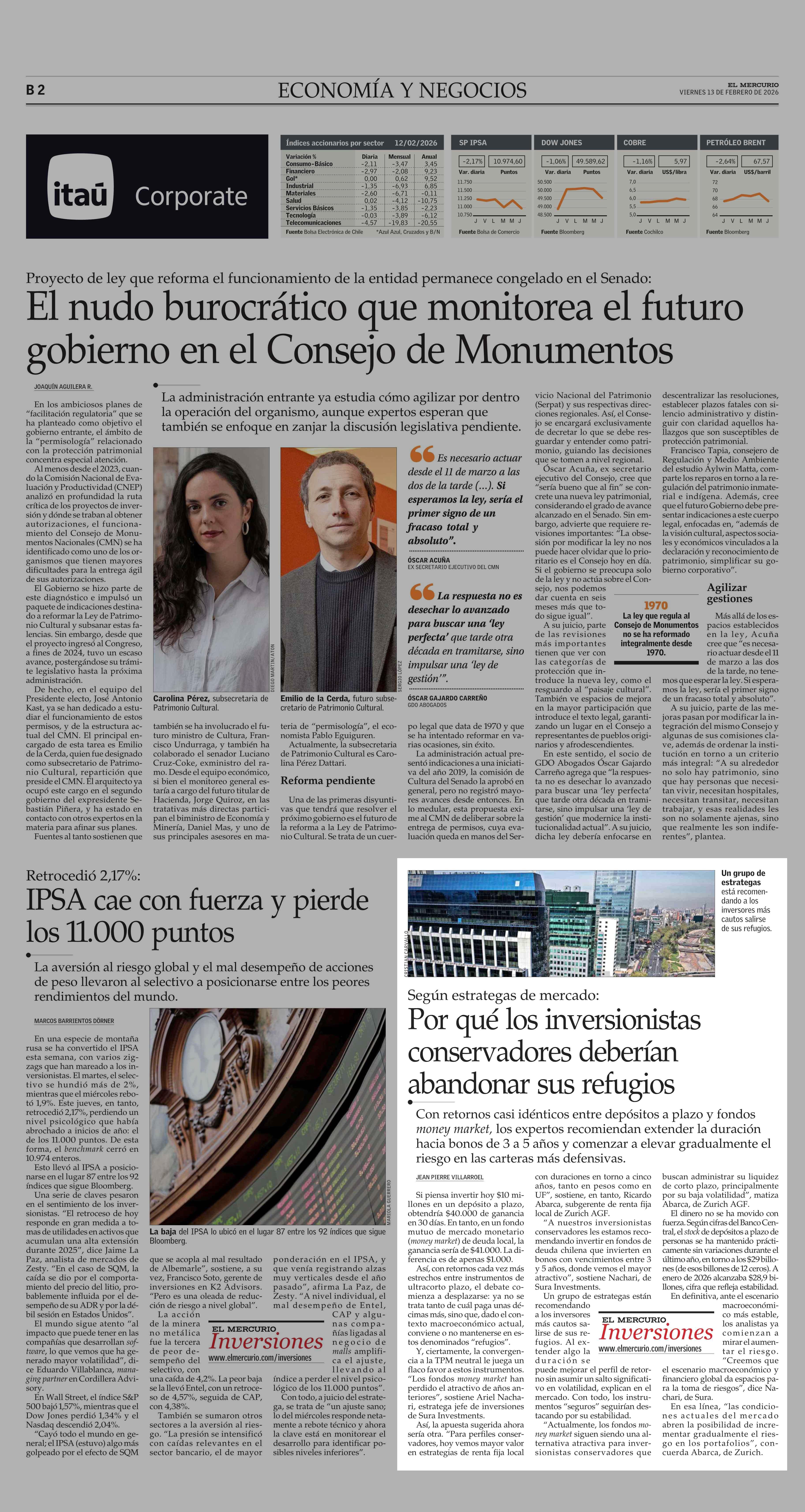 Por qué los inversionistas conservadores deberían abandonar sus refugios 13-02-2026 El Mercurio |