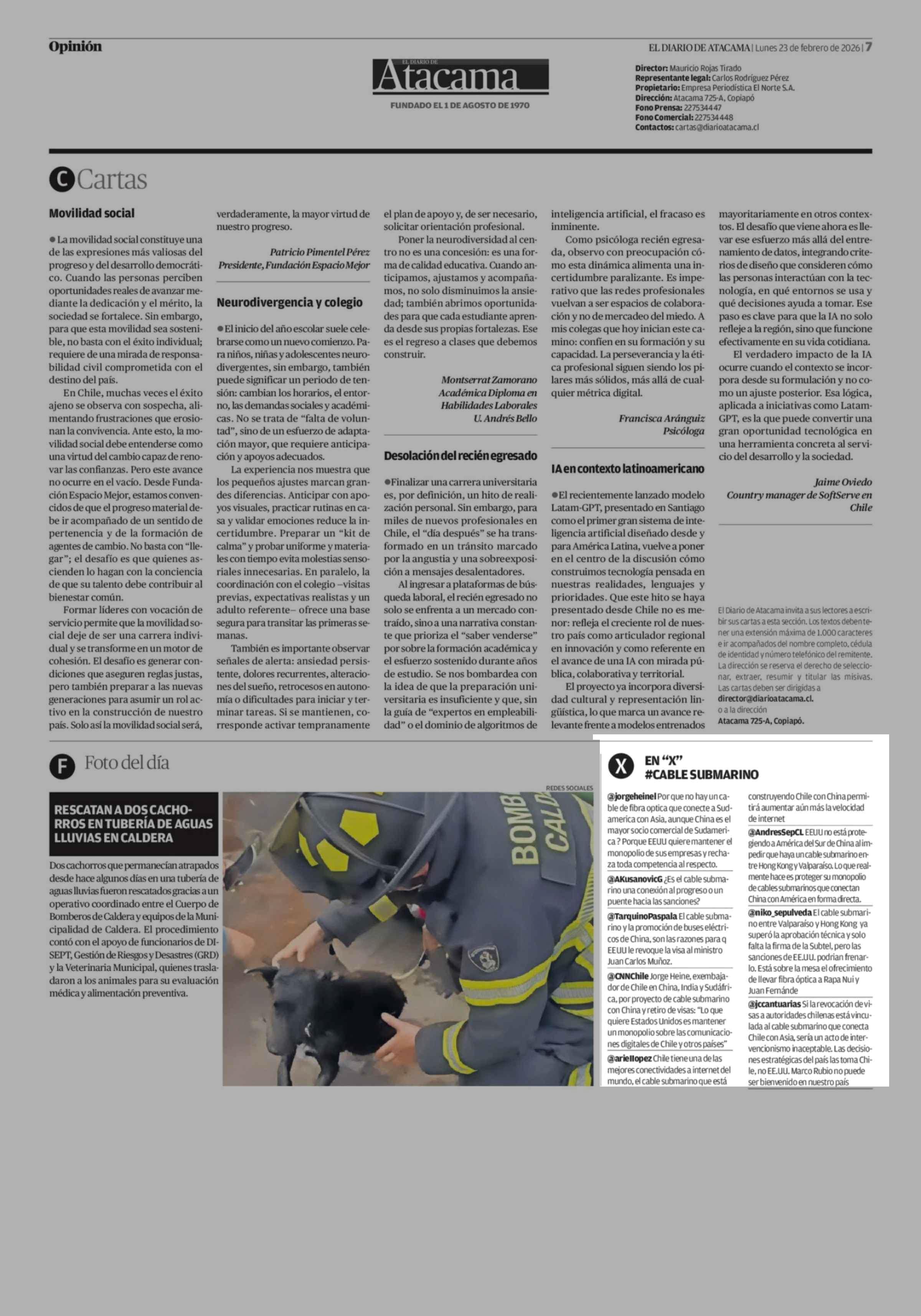 EN "X" #CABLE SUBMARINO 23-02-2026 El Diario de Atacama |
