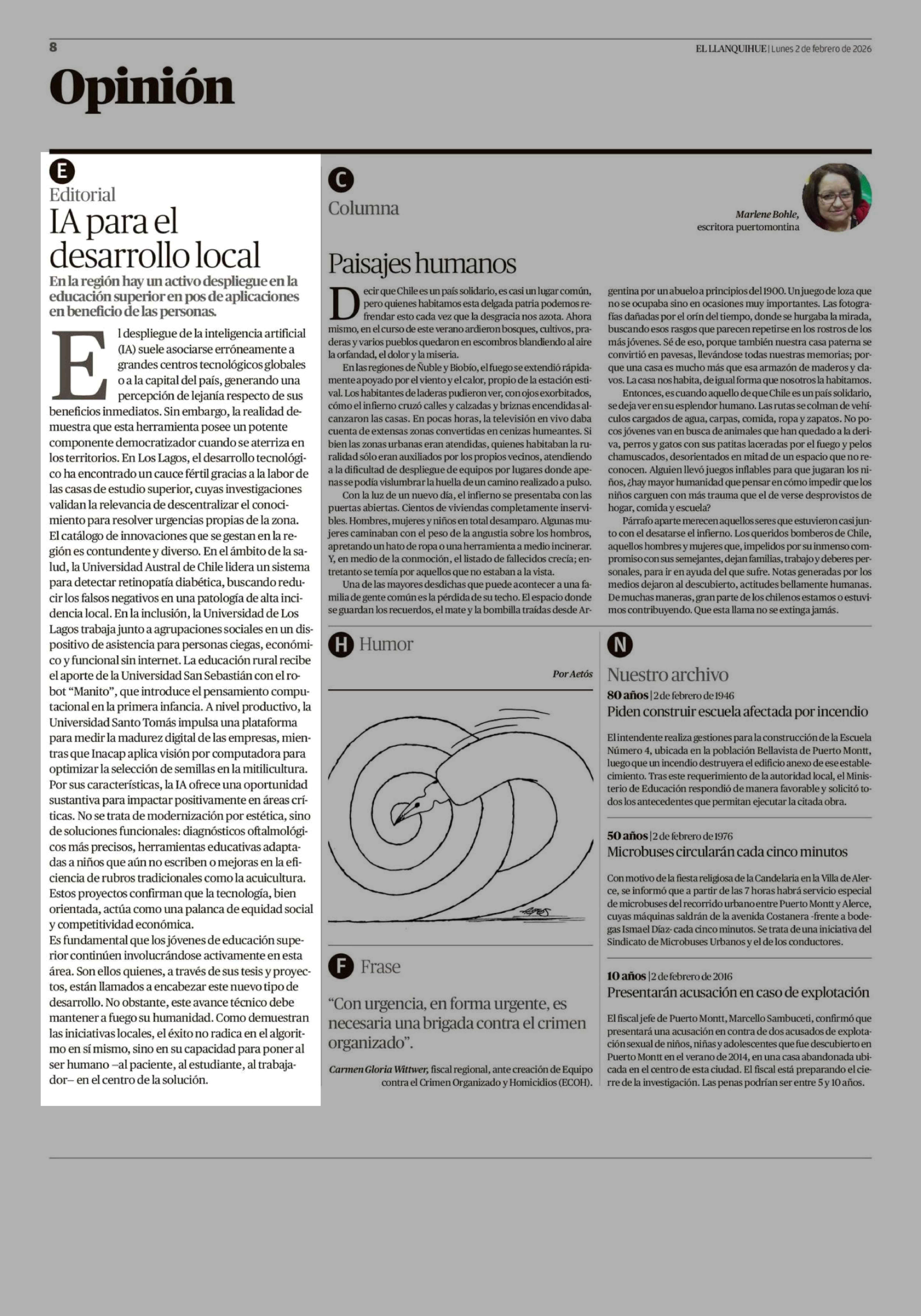 Editorial: IA para el desarrollo local 02-02-2026 El Llanquihue |