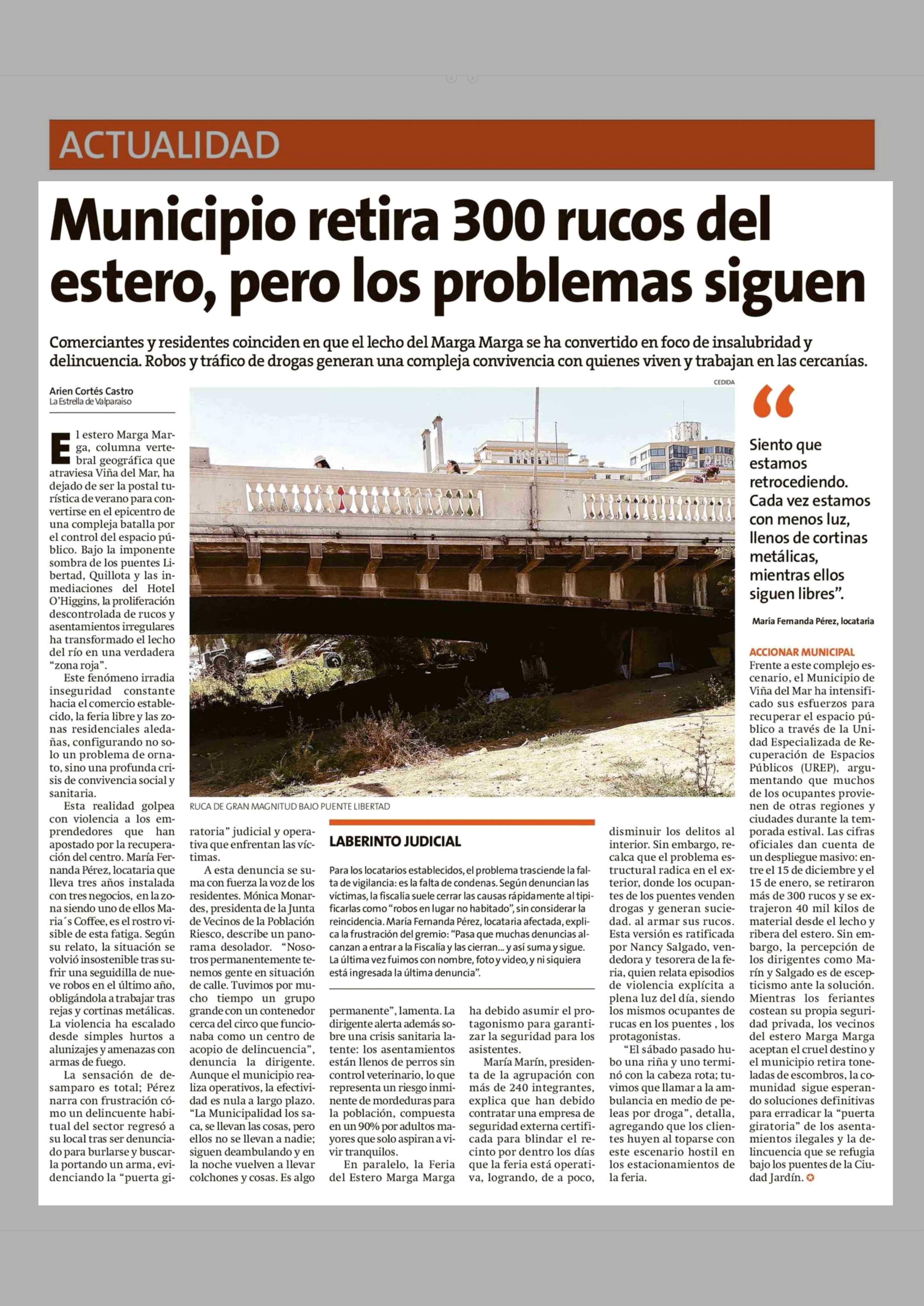 Municipio retira 300 rucos del estero, pero los problemas siguen 20-01-2026 La Estrella de Valparaíso |
