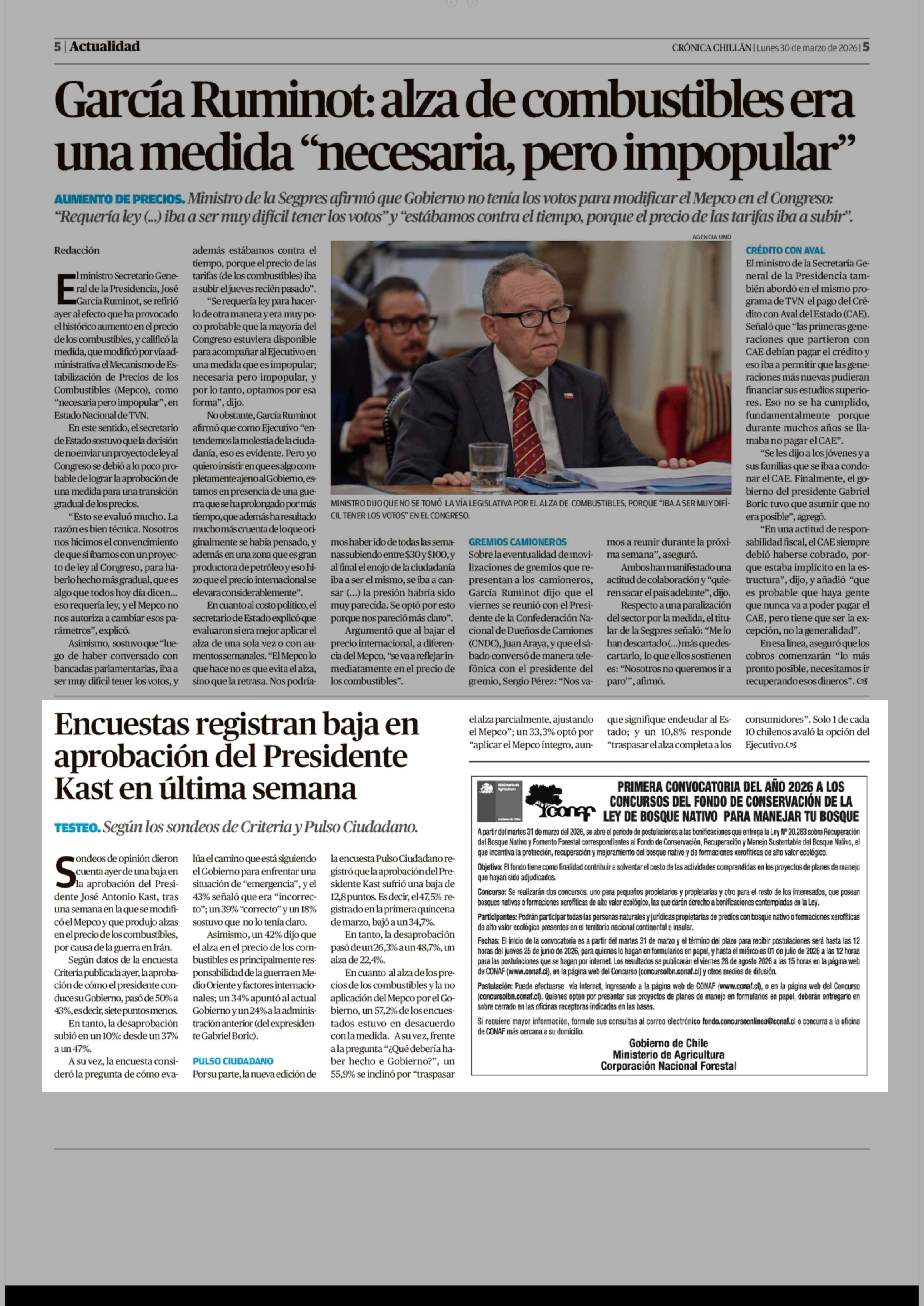 Fecha: 30-03-2026 Sector: Noticia general Región: Región del Ñuble