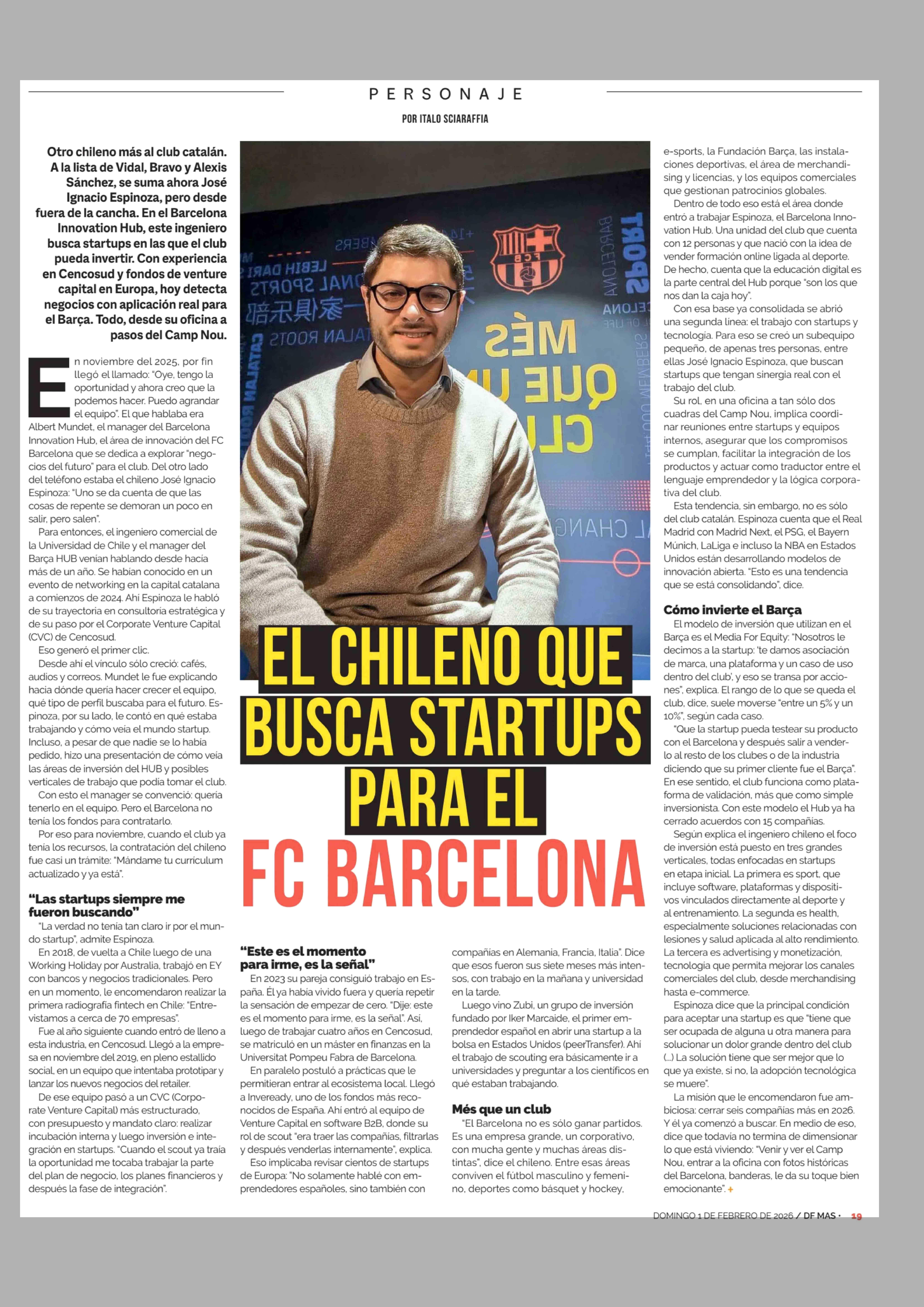 EL CHILENO QUE BUSCA STARTUPS PARA EL FC BARCELONA 01-02-2026 Diario Financiero |