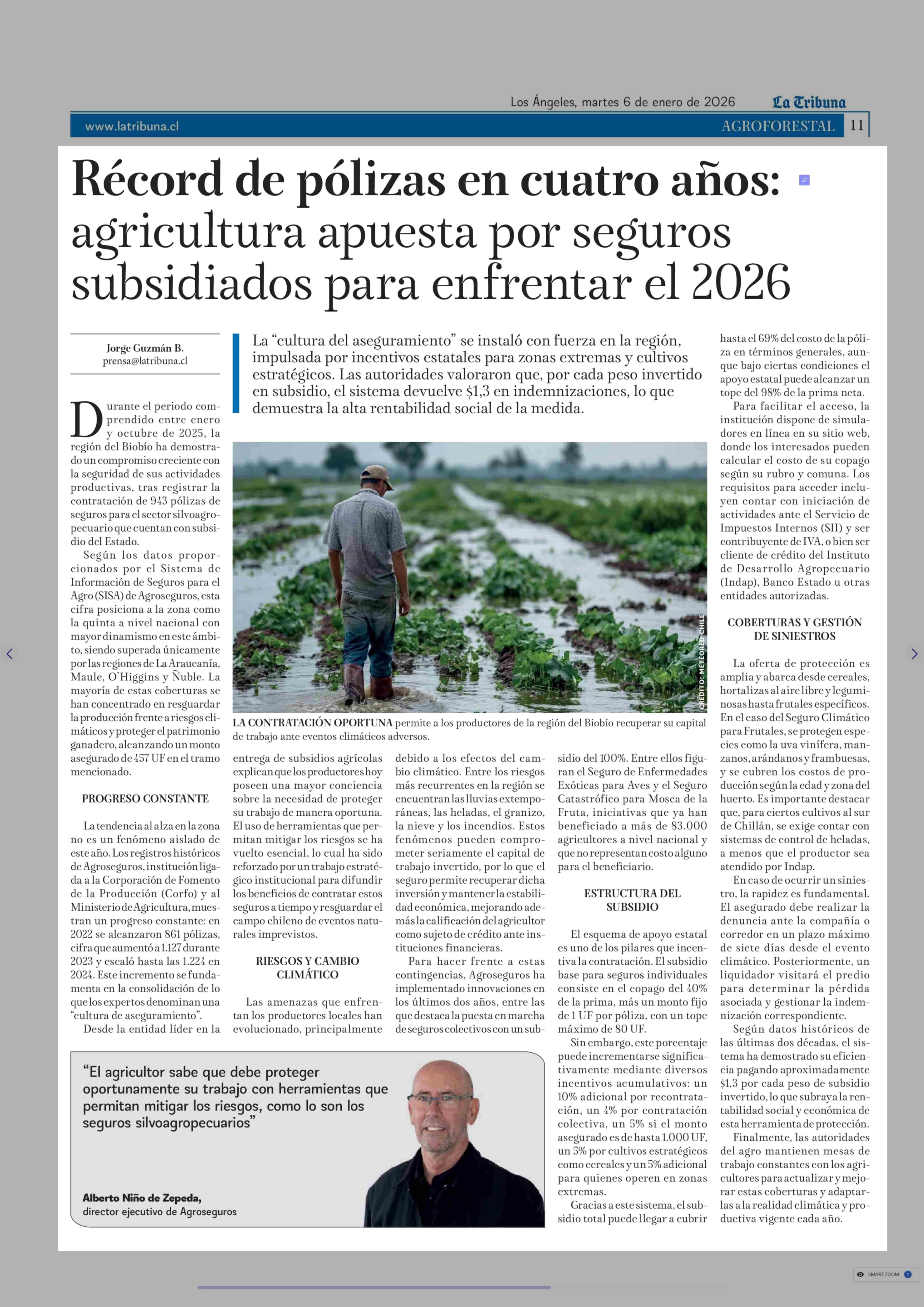 Récord de pólizas en cuatro años: agricultura apuesta por seguros subsidiados para enfrentar el 2026 06-01-2026 La Tribuna |