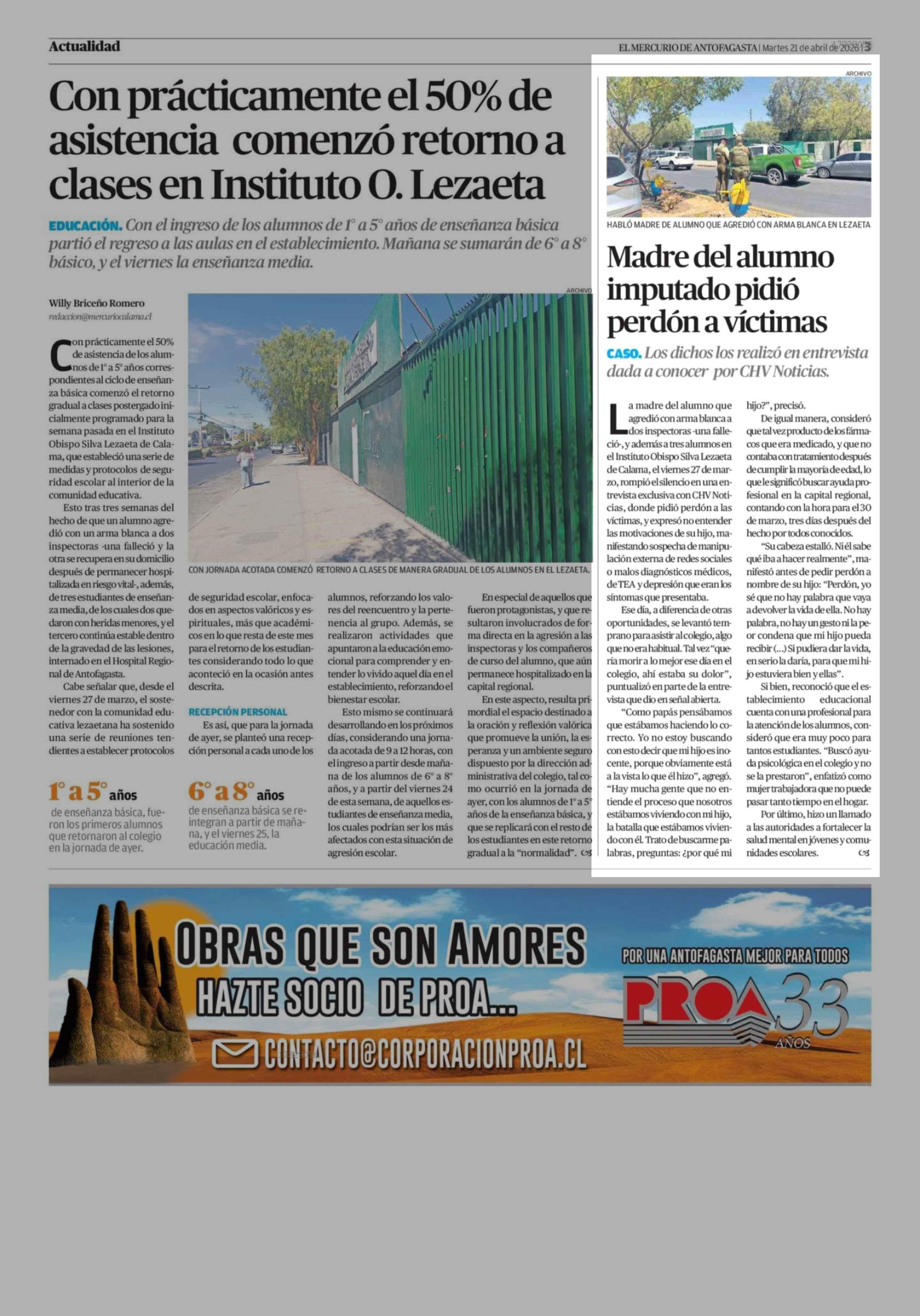 Fuente: El Mercurio de Antofagasta (El Mercurio de Antofagasta) Página(s): 3