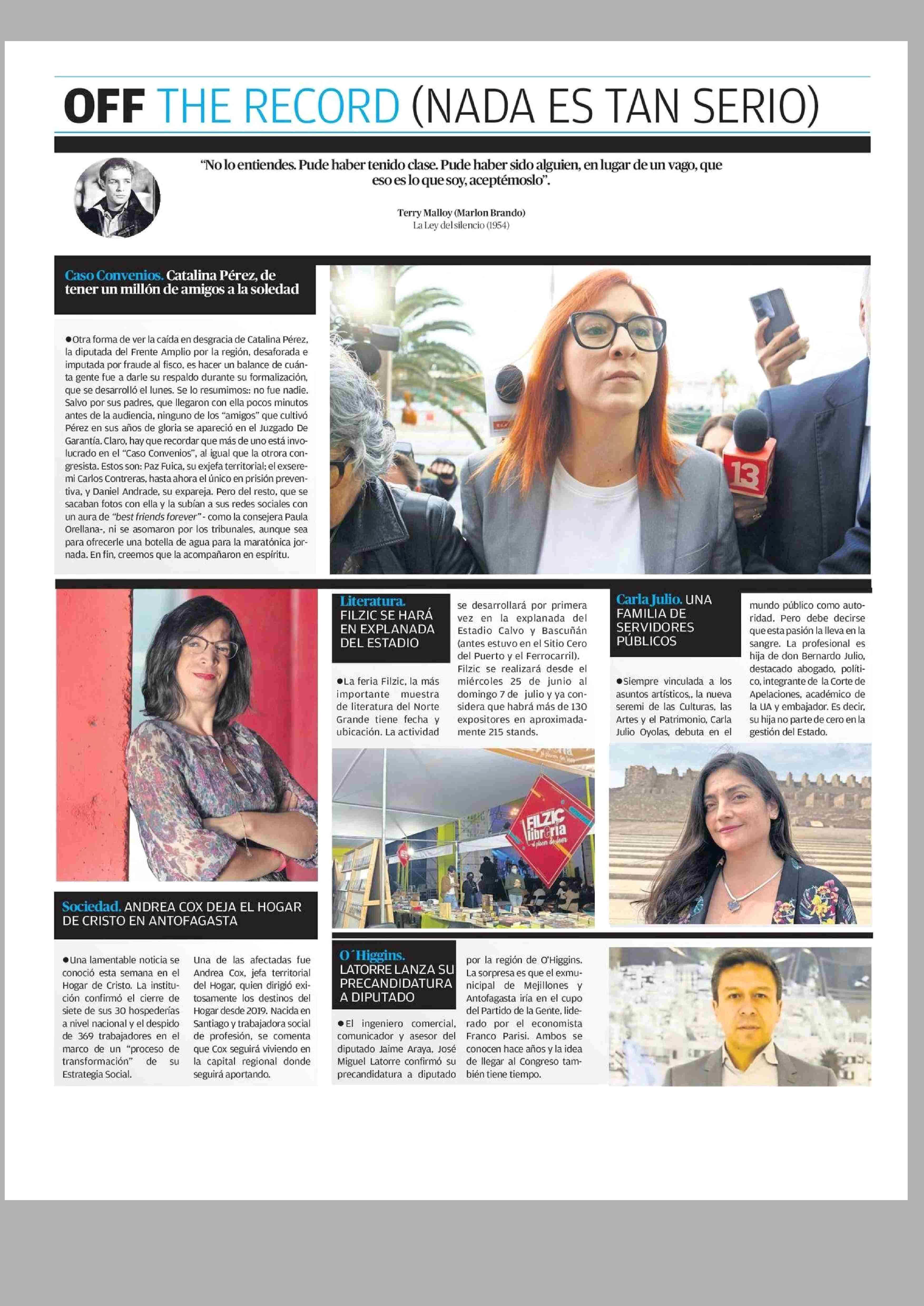 OFF THE RECORD (NADA ES TAN SERIO) 18-05-2025 El Mercurio de Antofagasta |
