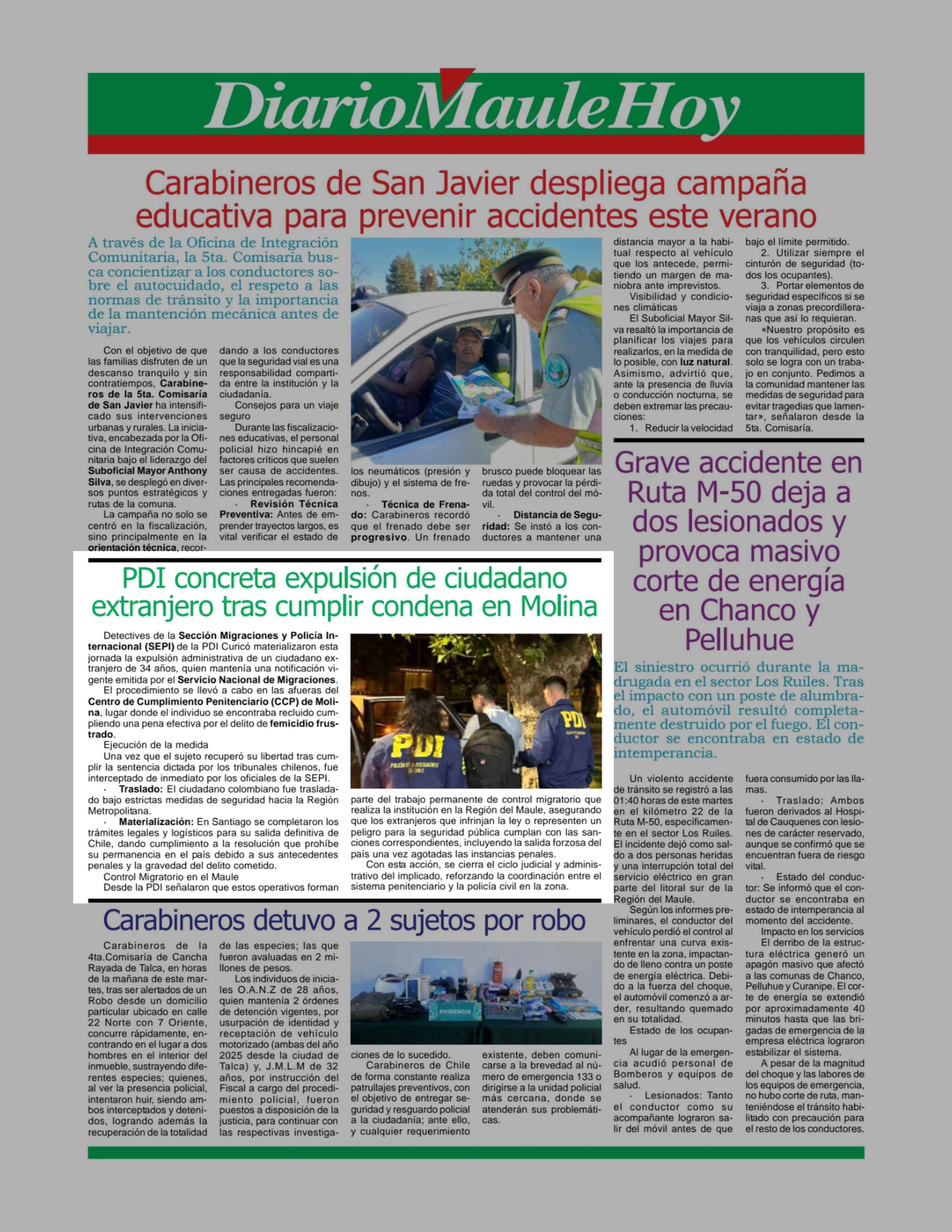 Título: PDI concreta expulsión de ciudadano extranjero tras cumplir condena en Molina