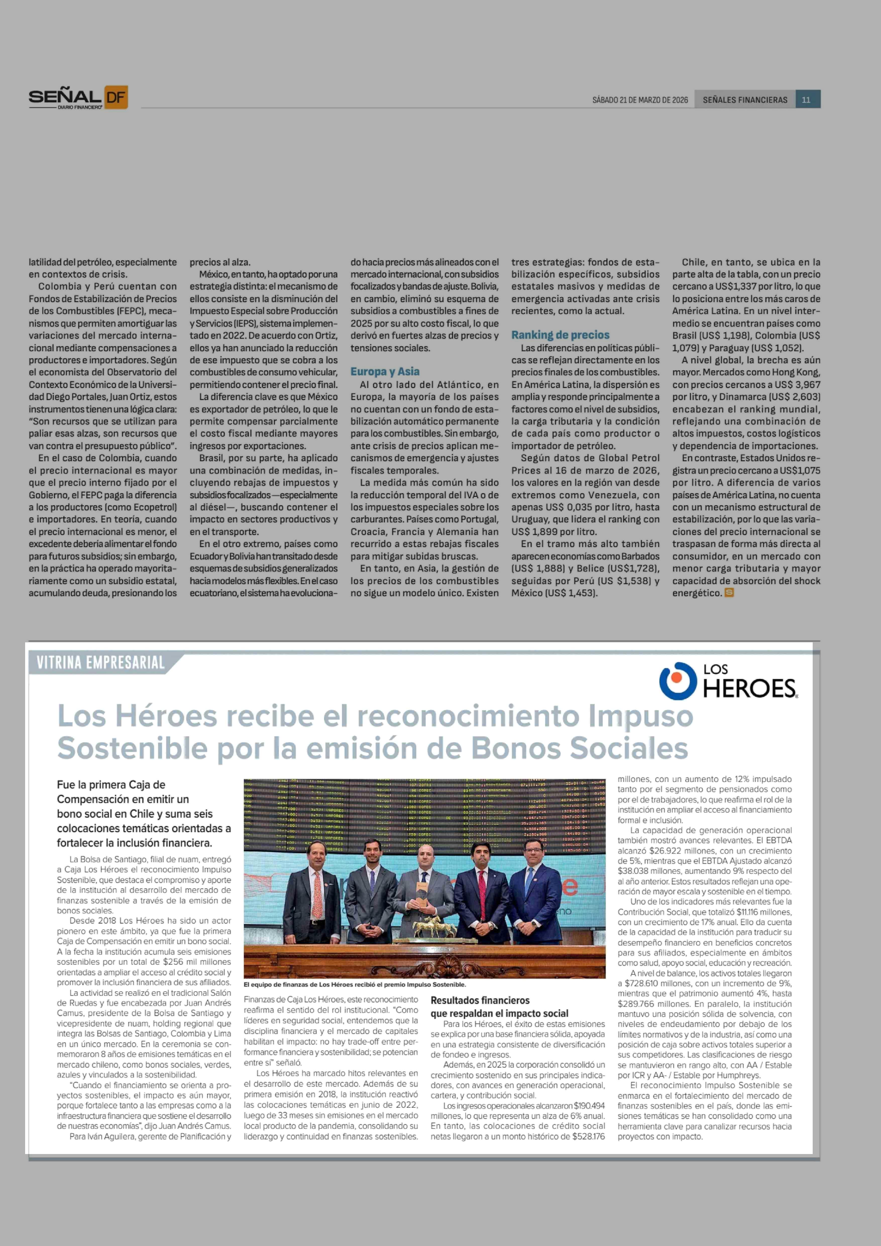 Los Héroes recibe el reconocimiento Impuso Sostenible por la emisión de Bonos Sociales 21-03-2026 Diario Financiero |