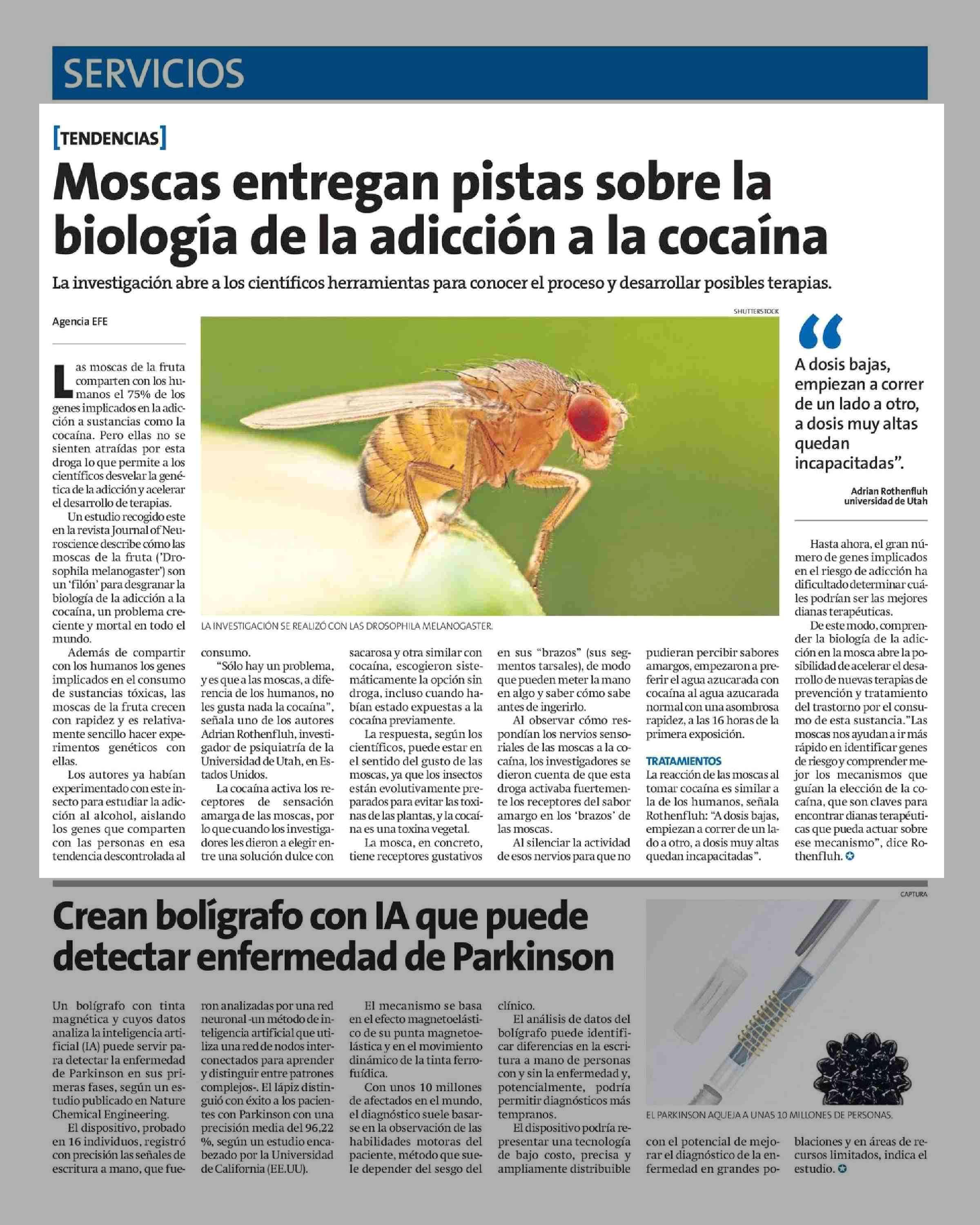 Moscas entregan pistas sobre la biología de la adicción a la cocaína 04-06-2025 La Estrella de Antofagasta |