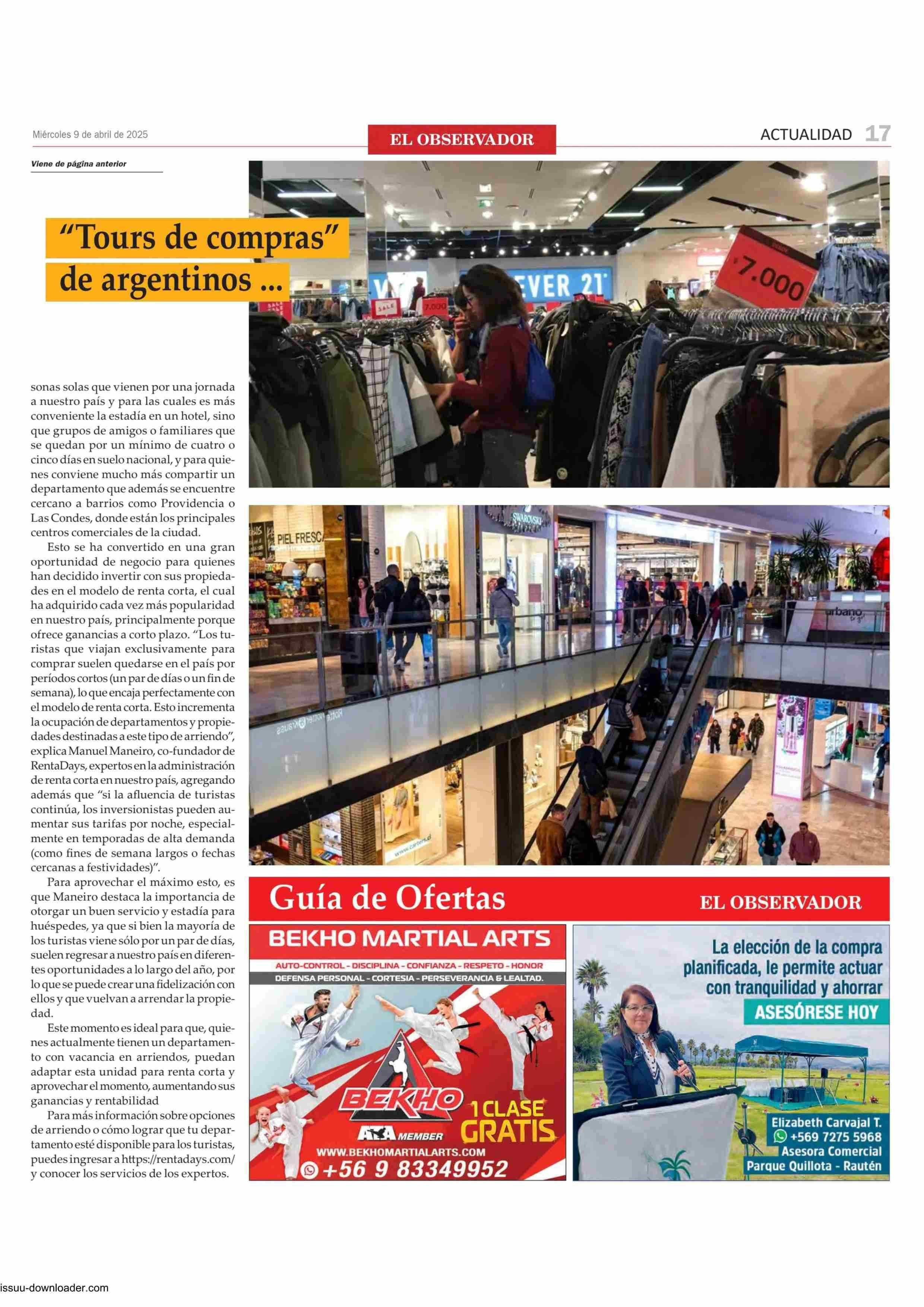 “Tours de compras” de argenti en Chile y su impacto en el mercado inmobiliario: renta corta sigue en aumento 09-04-2025 El Observador |