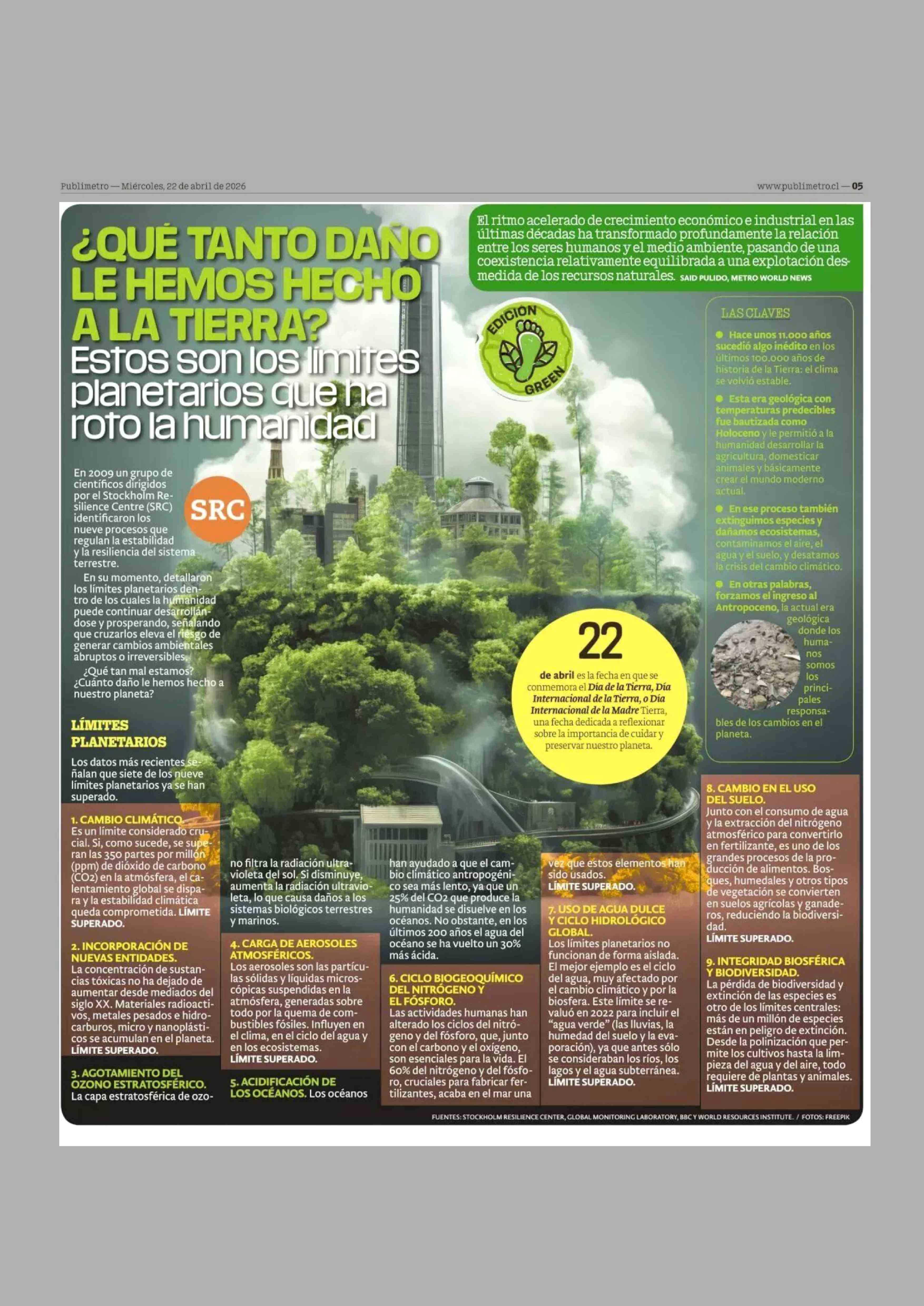 ¿QUÉ TANTO DANO LE HEMOS HECHO ALA TIERRA? Estos son los limites planetarios que ha roto la humanidad 22-04-2026 Publimetro |