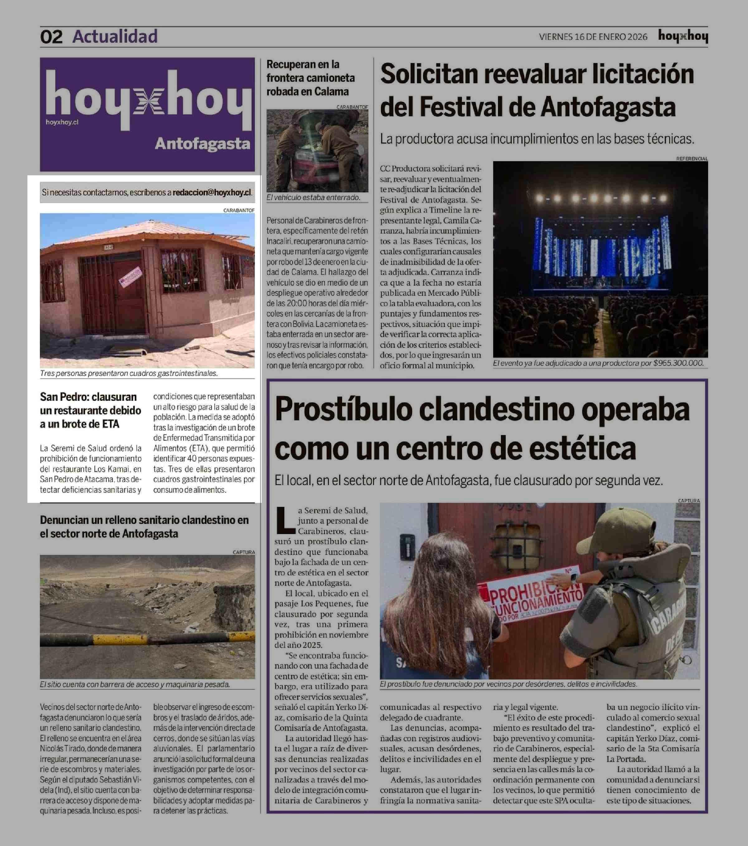 Fecha: 16-01-2026 Sector: Noticia general Región: Región de Antofagasta