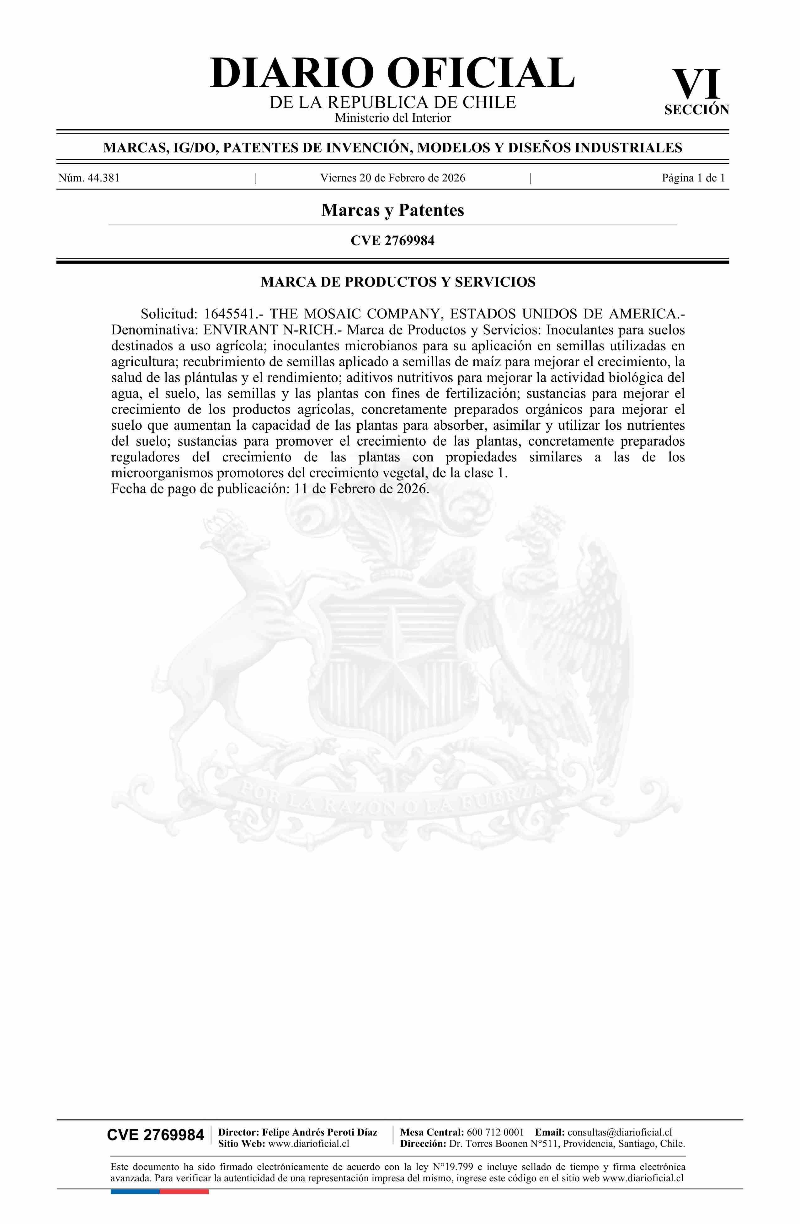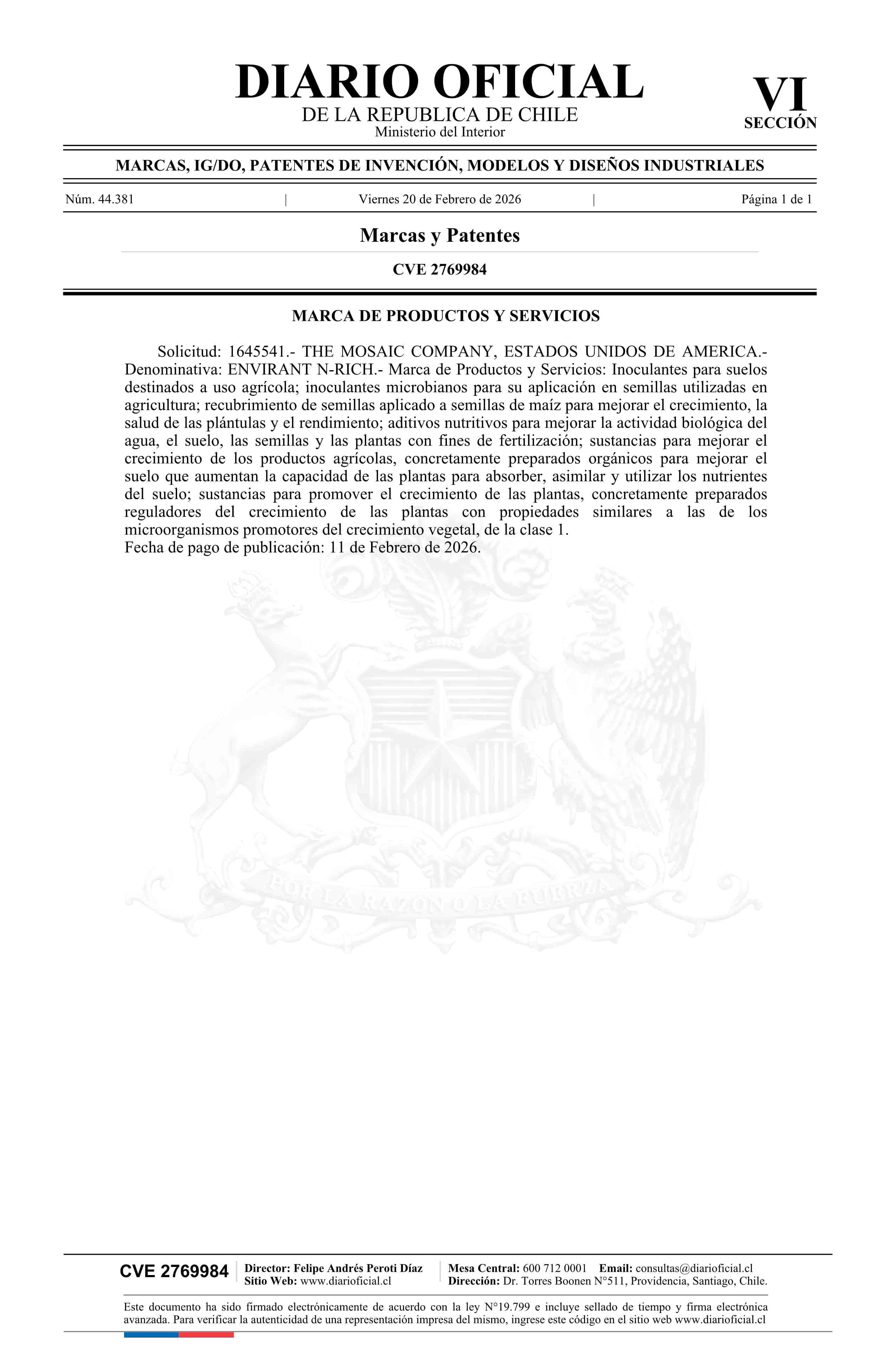 Fuente: Diario Oficial Edición Electrónica (Diario Oficial de Chile - 6 Marcas Y Patentes) Página(s): 110