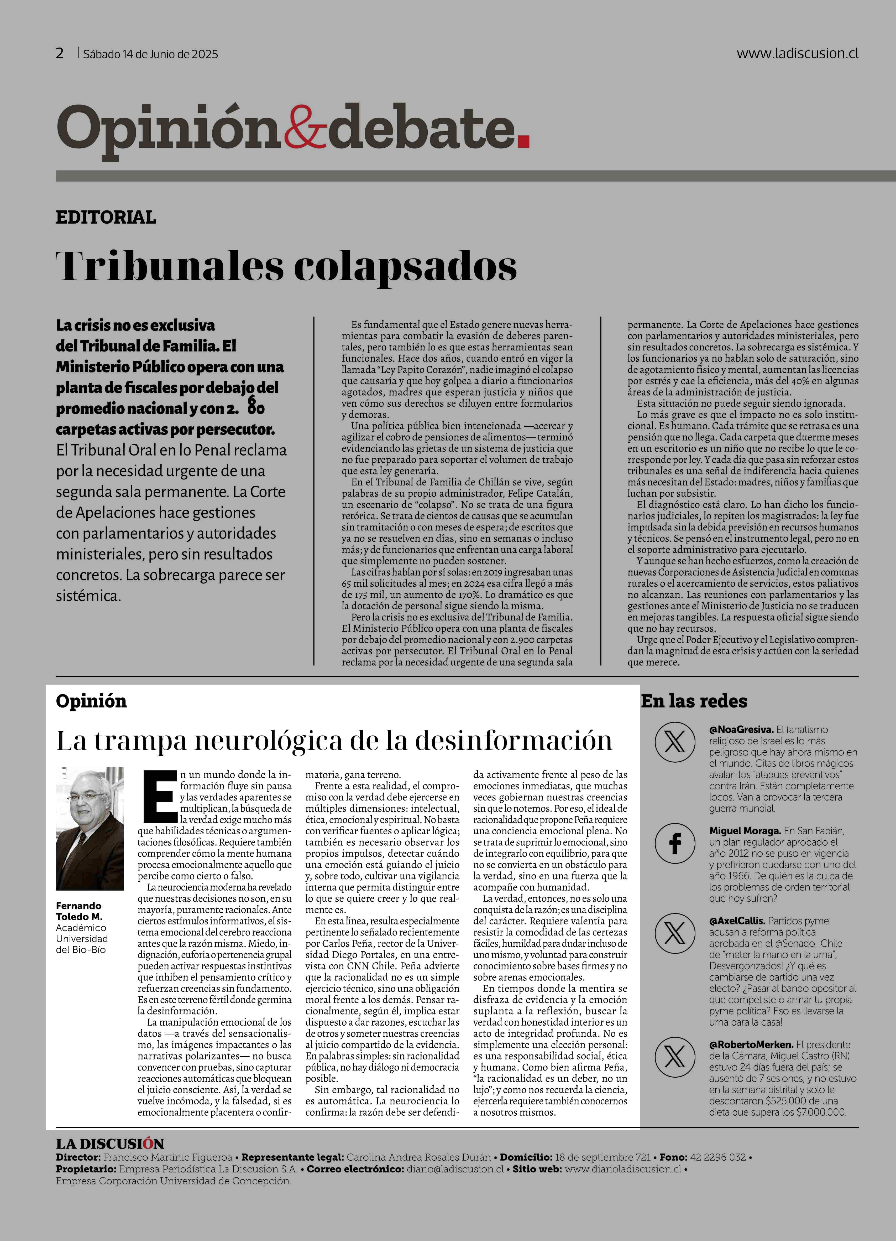 Columnas de Opinión: La trampa neurológica de la desinformación 14-06-2025 La Discusión |