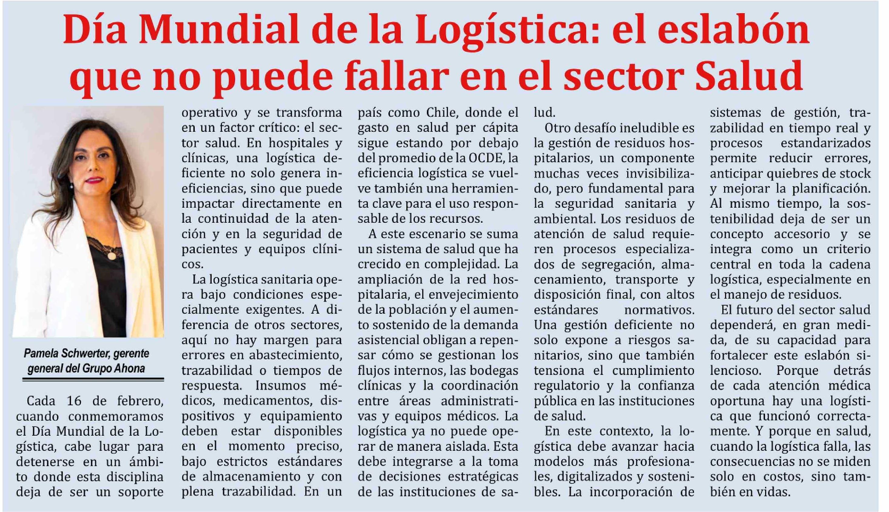 Columnas de Opinión: Día Mundial de la Logística: el eslabón que no puede fallar en el sector Salud 17-02-2026 Las Noticias |