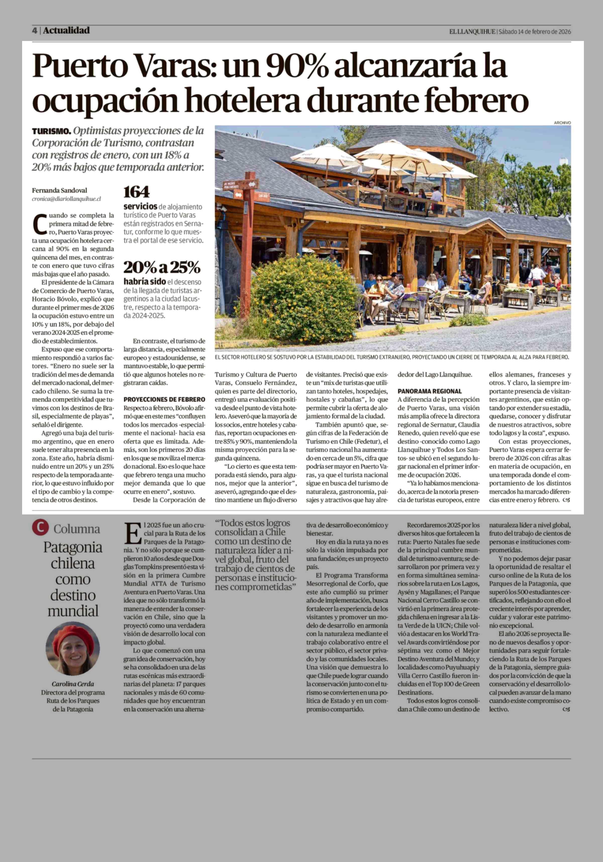 Puerto Varas: un 90% alcanzaría la ocupación hotelera durante febrero 14-02-2026 El Llanquihue |