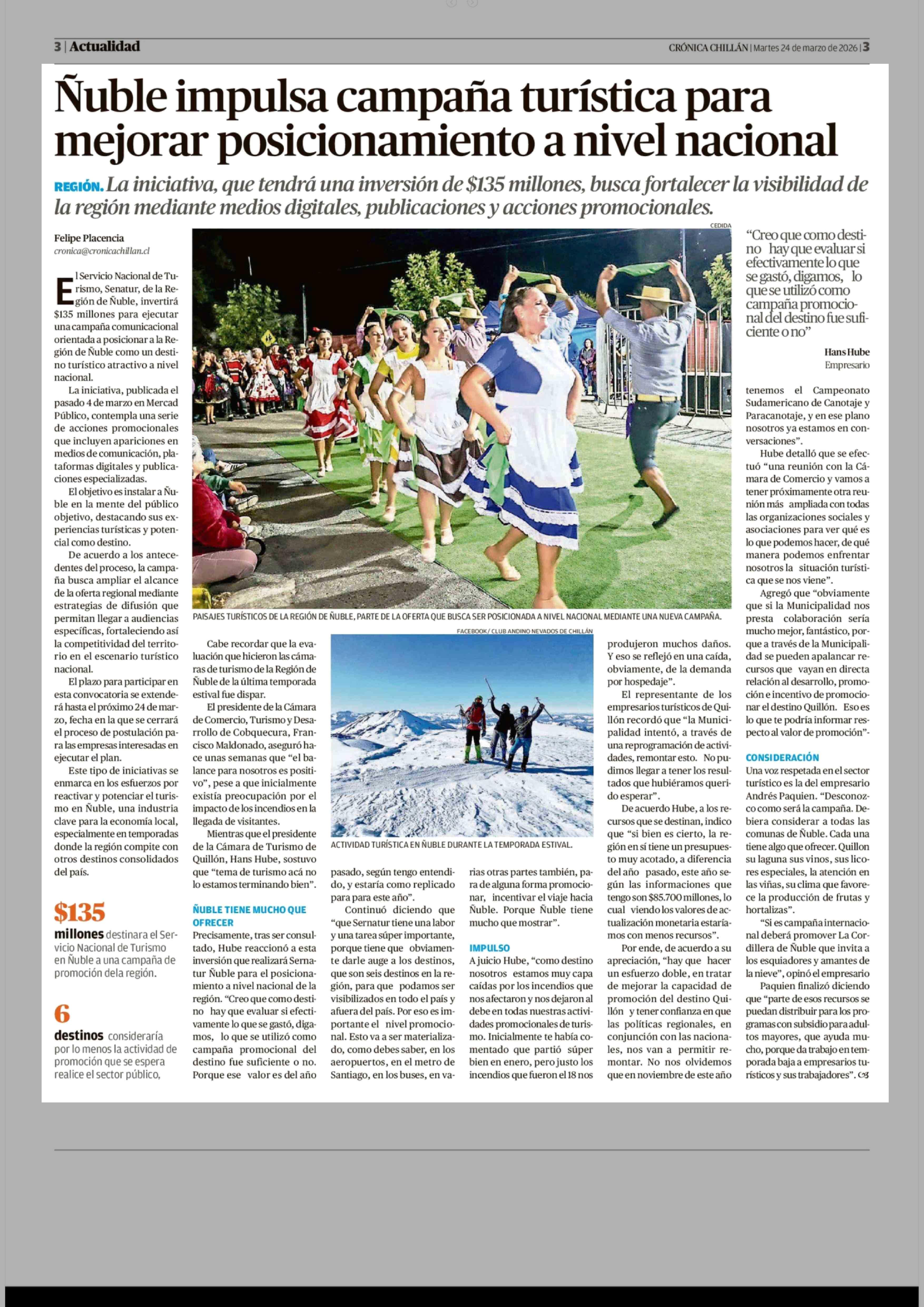 Ñuble impulsa campaña turística para mejorar posicionamiento a nivel nacional 24-03-2026 Crónica de Chillán |