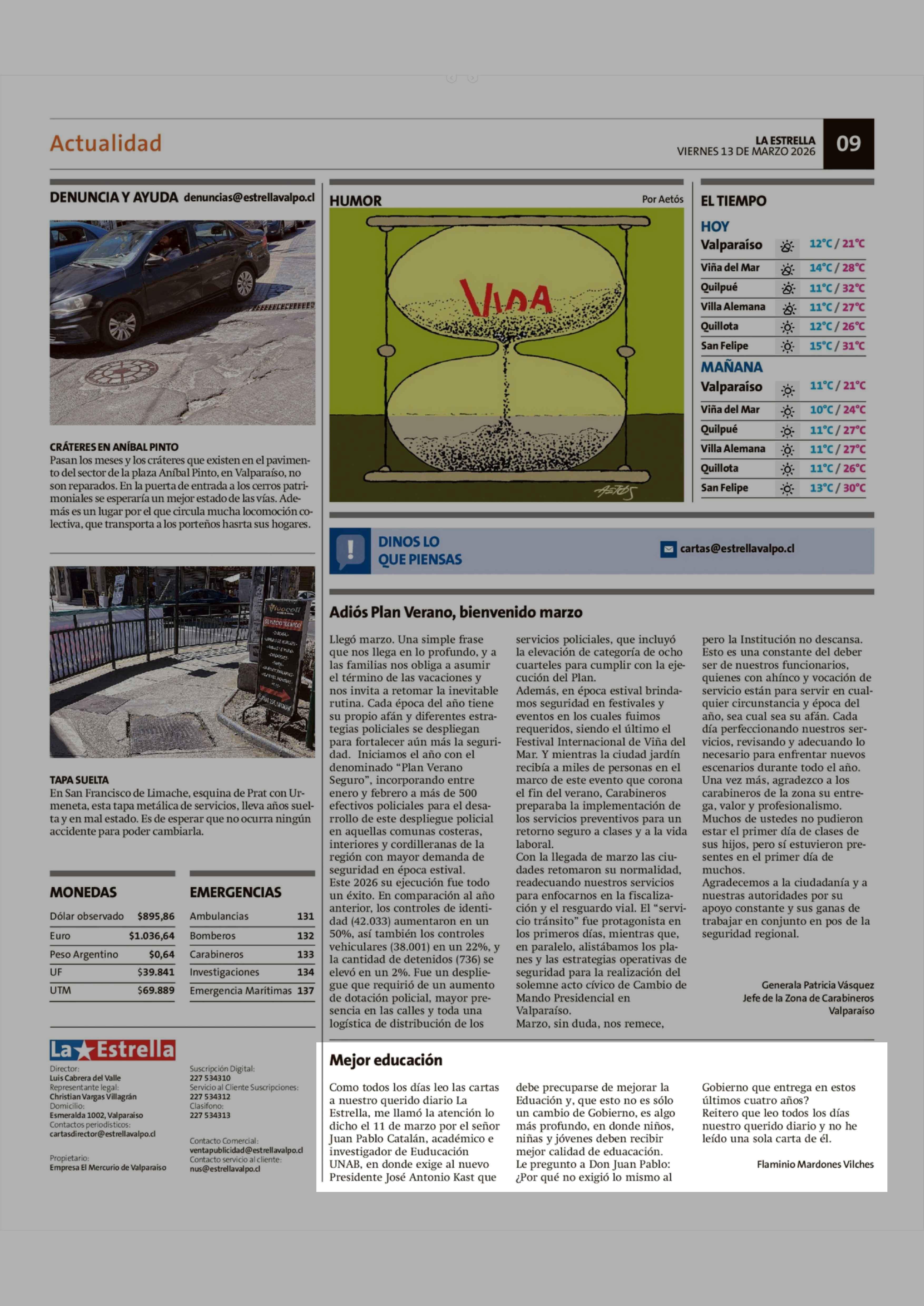 13-03-2026 La Estrella de Valparaíso