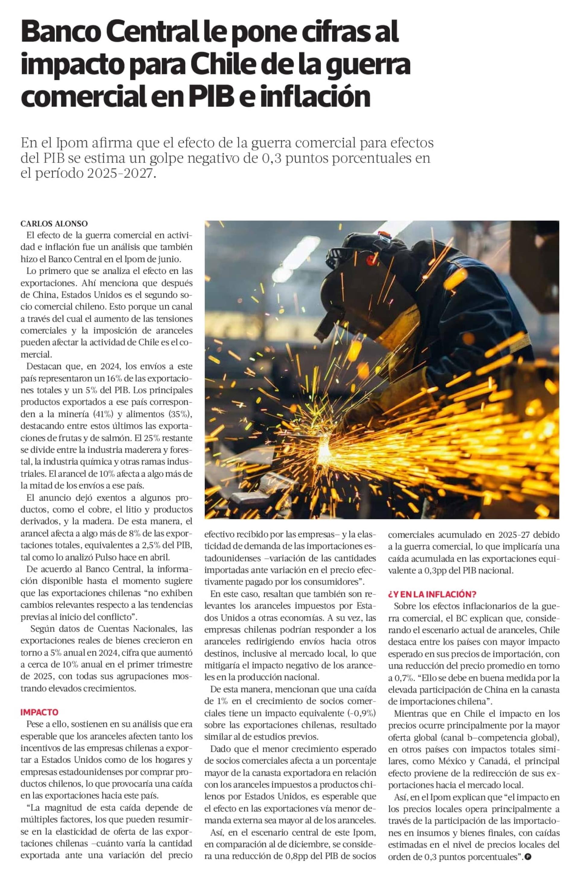 Título: Banco Central le pone cifras al impacto para Chile de la guerra comercial en PIB e inflación