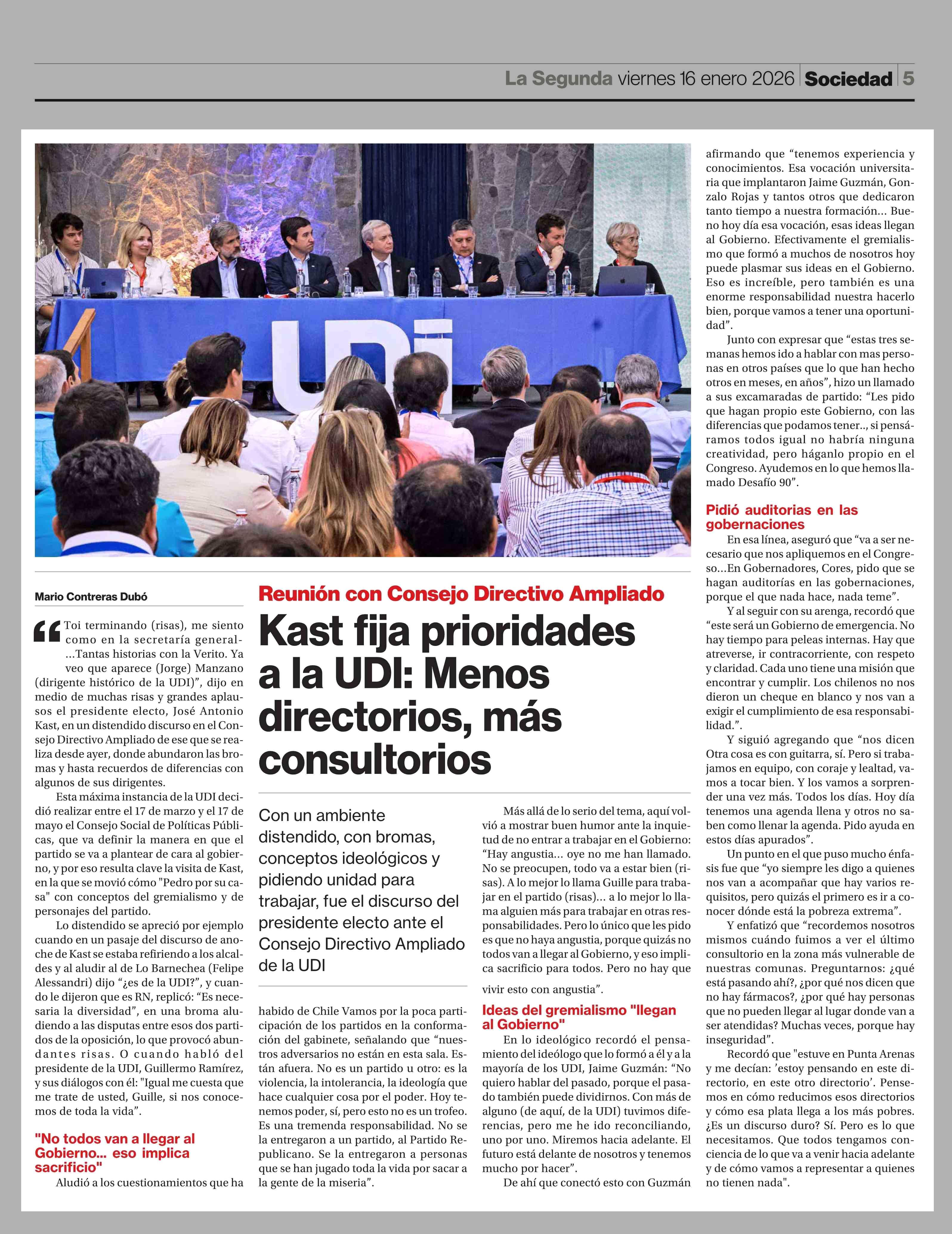 Título: Kast fija prioridades a la UDI: Menos directorios, más consultorios