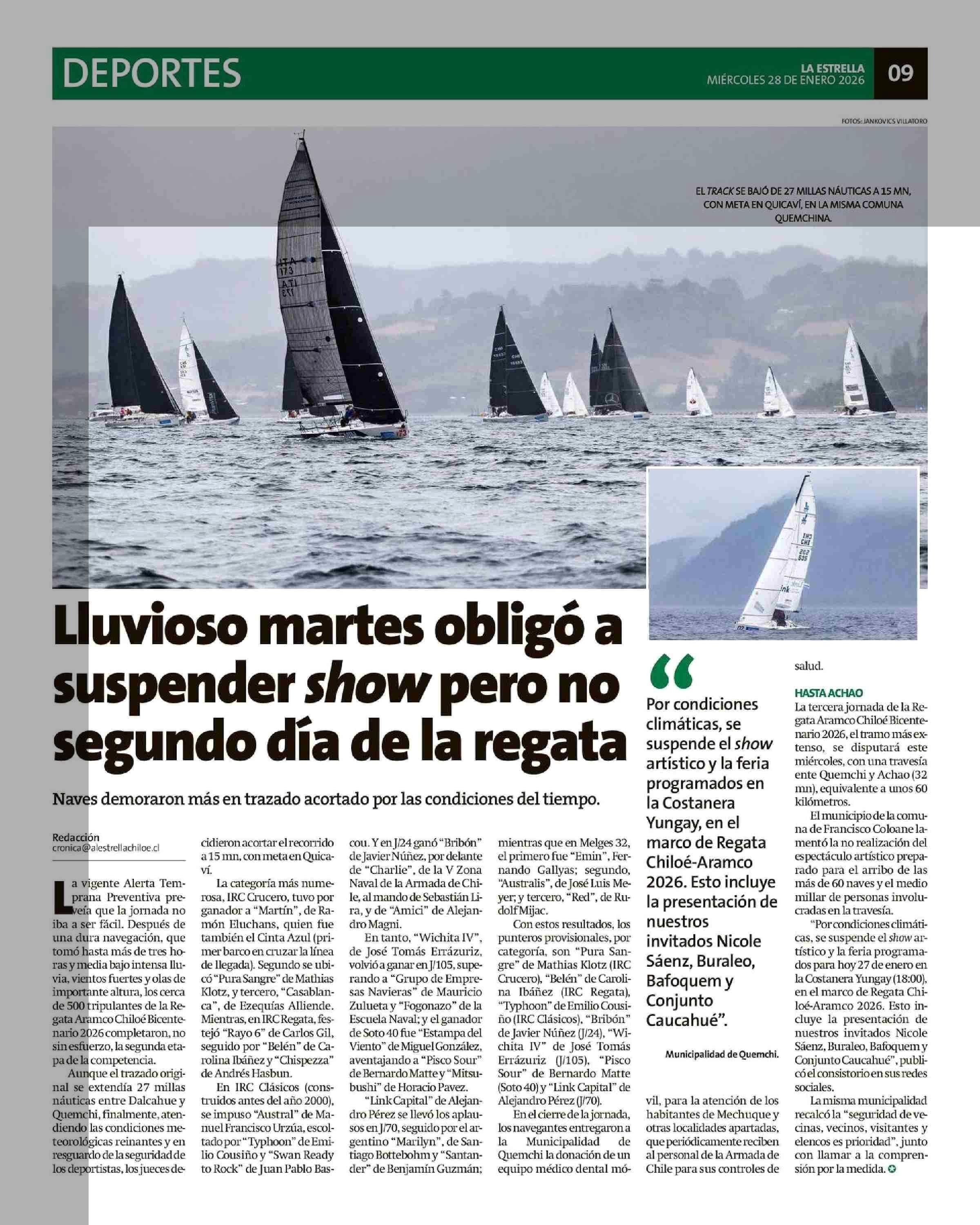Título: Lluvioso martes obligó a suspender show pero no segundo día de la regata