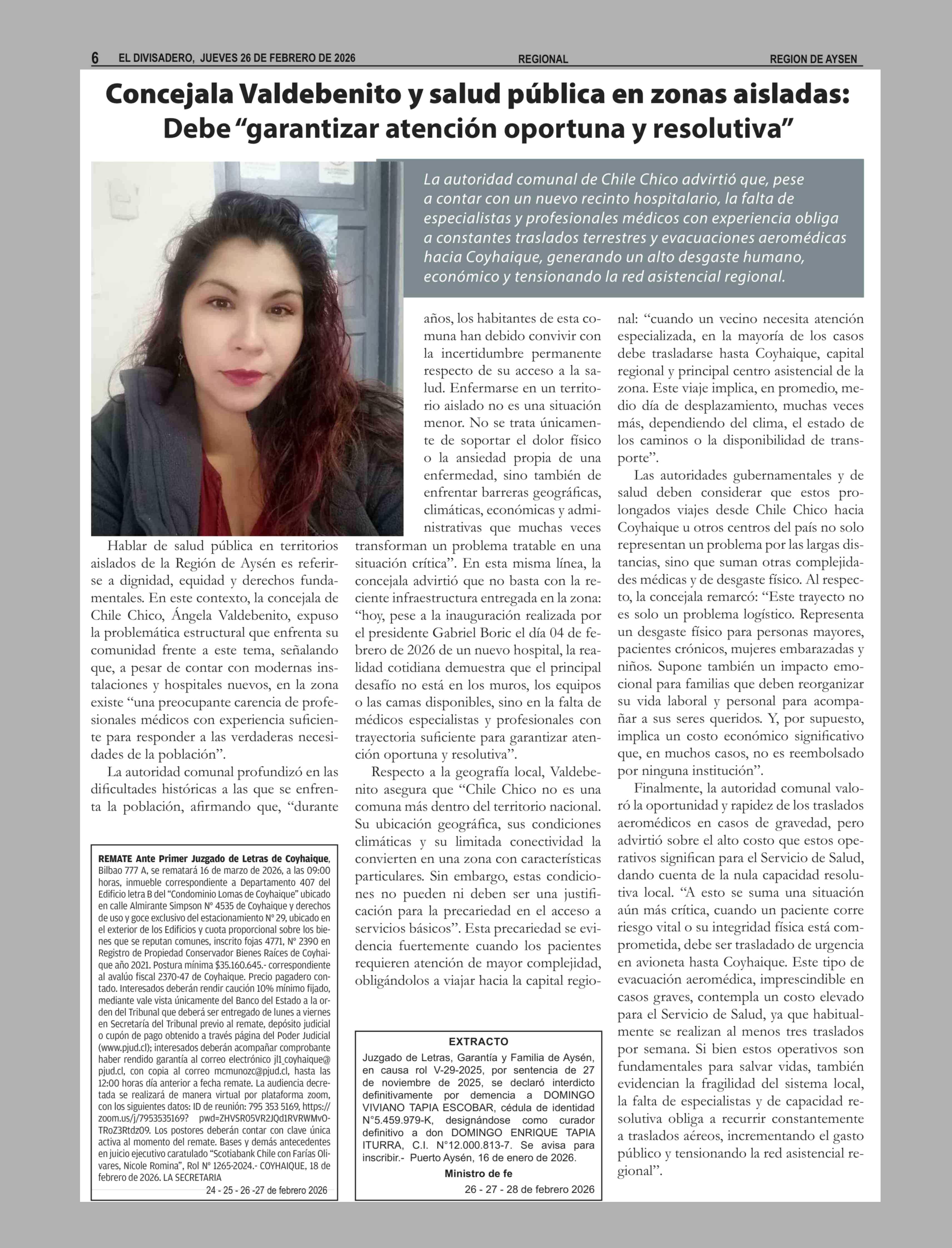 Concejala Valdebenito y salud pública en zonas aisladas: Debe "garantizar atención oportuna y resolutiva" 26-02-2026 El Divisadero |