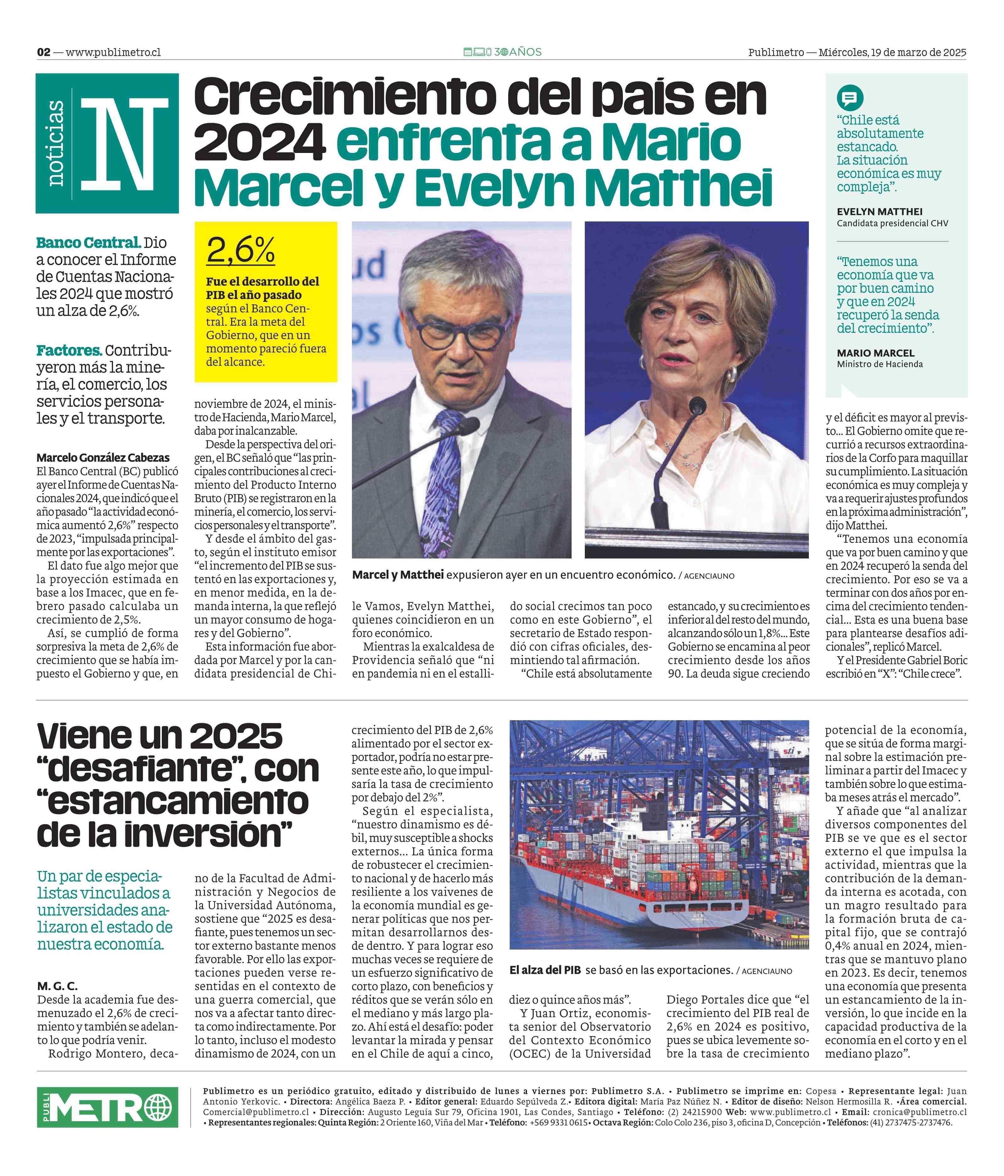 Viene un 2025 “desafiante”, con “estancamiento de la inversión” 19-03-2025 Publimetro |