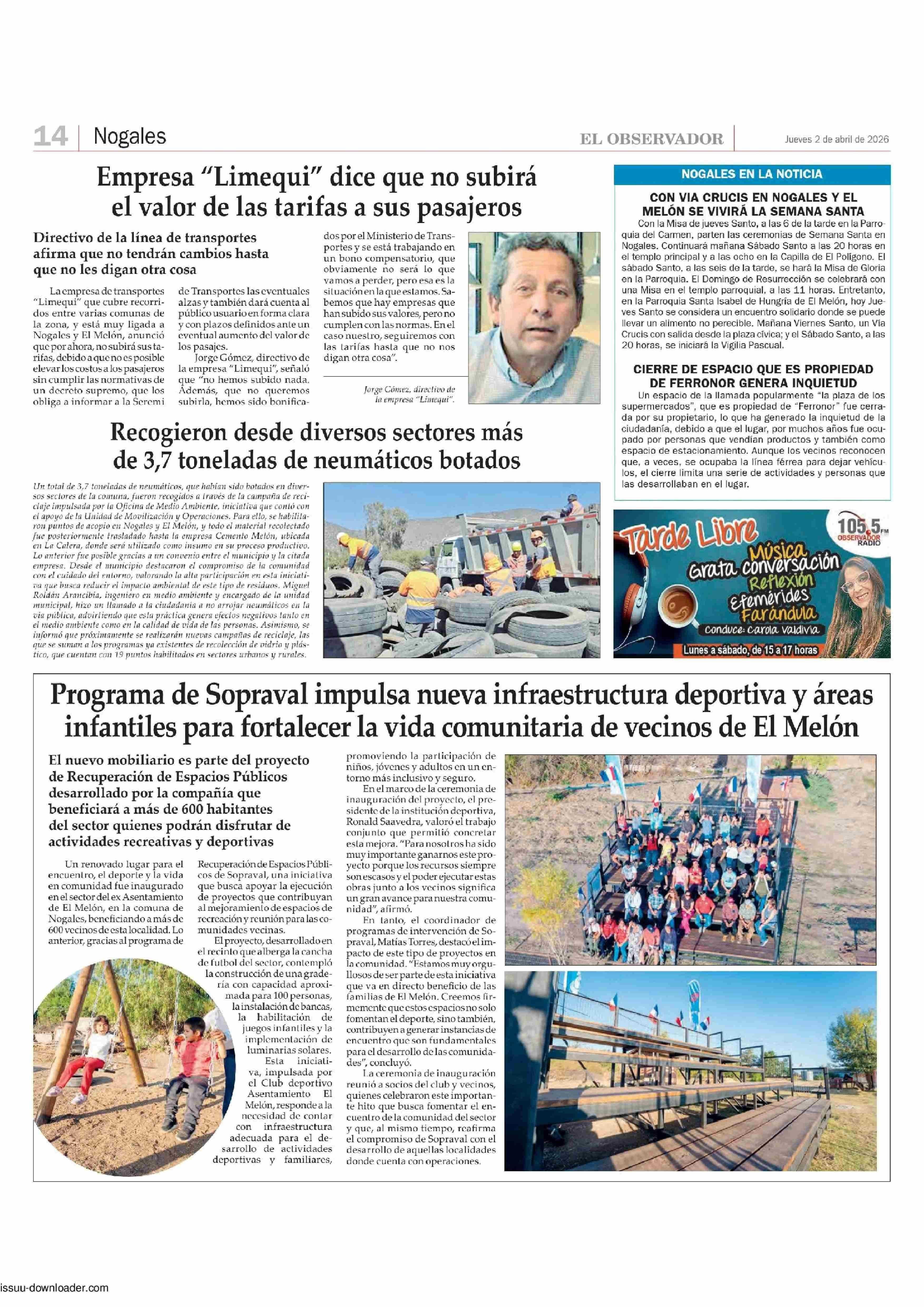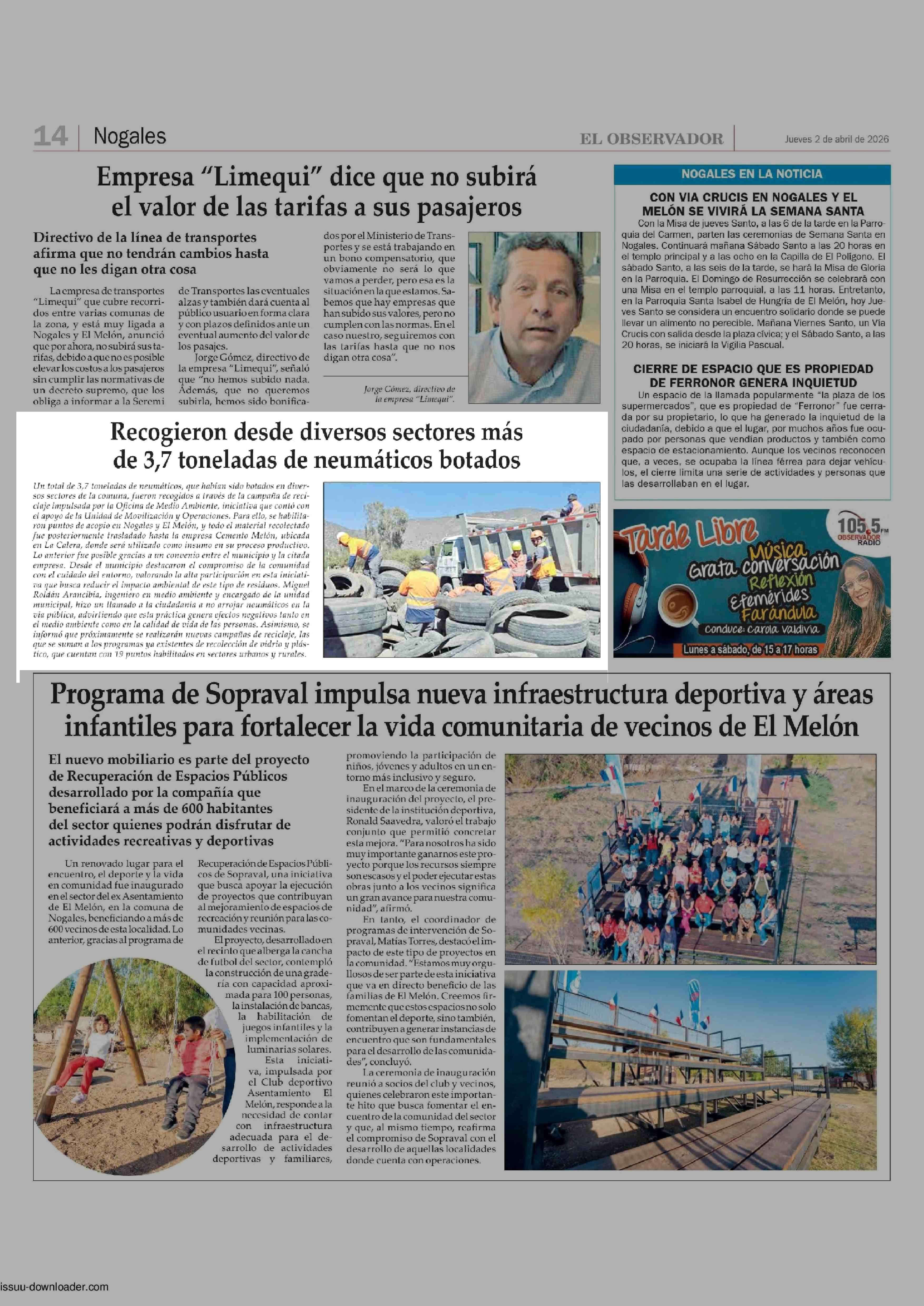 Recogieron desde diversos sectores más de 3,7 toneladas de neumáticos botados 02-04-2026 El Observador |