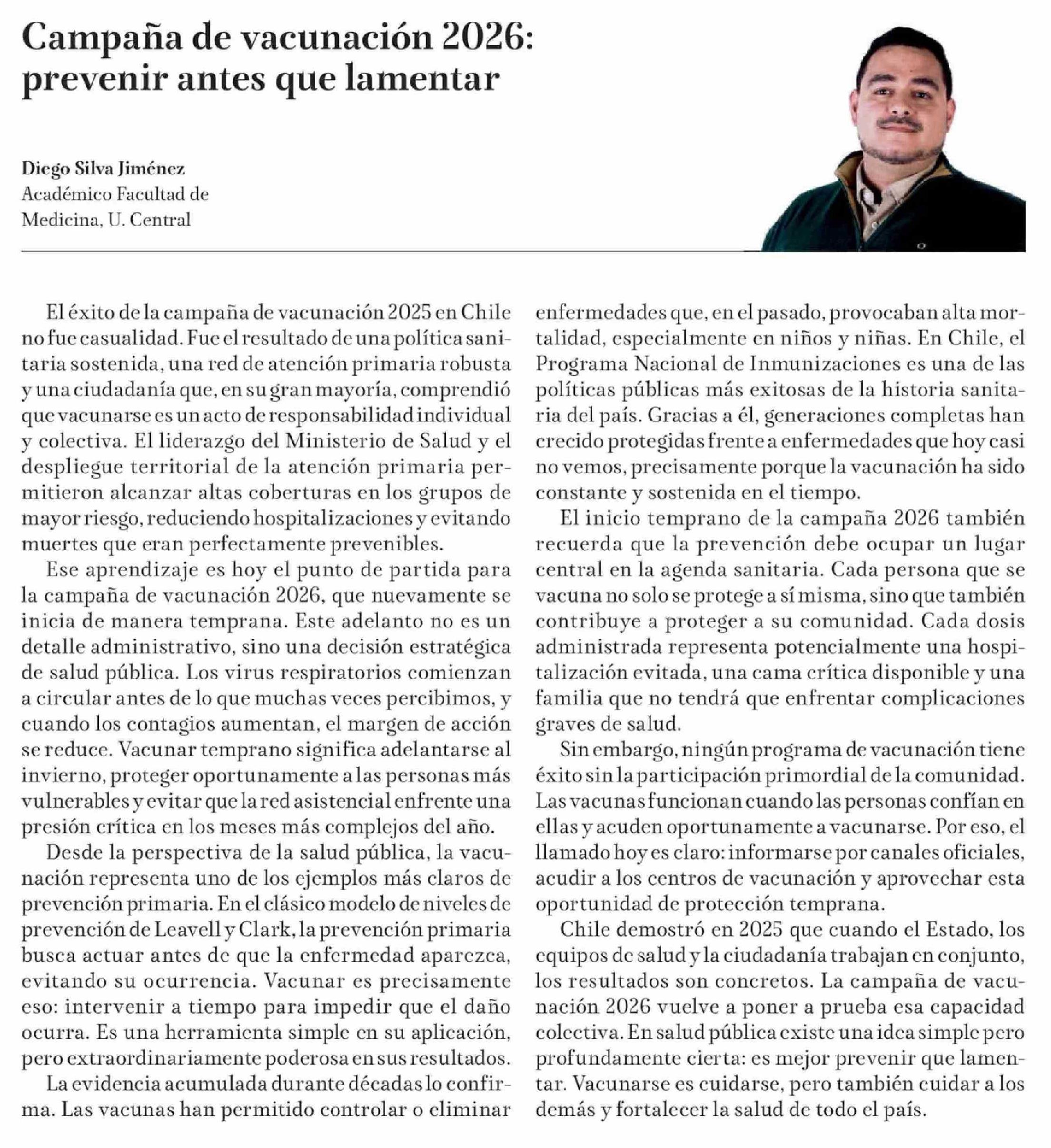 Título: Columnas de Opinión: Campaña de vacunación 2026: prevenir antes que lamentar
