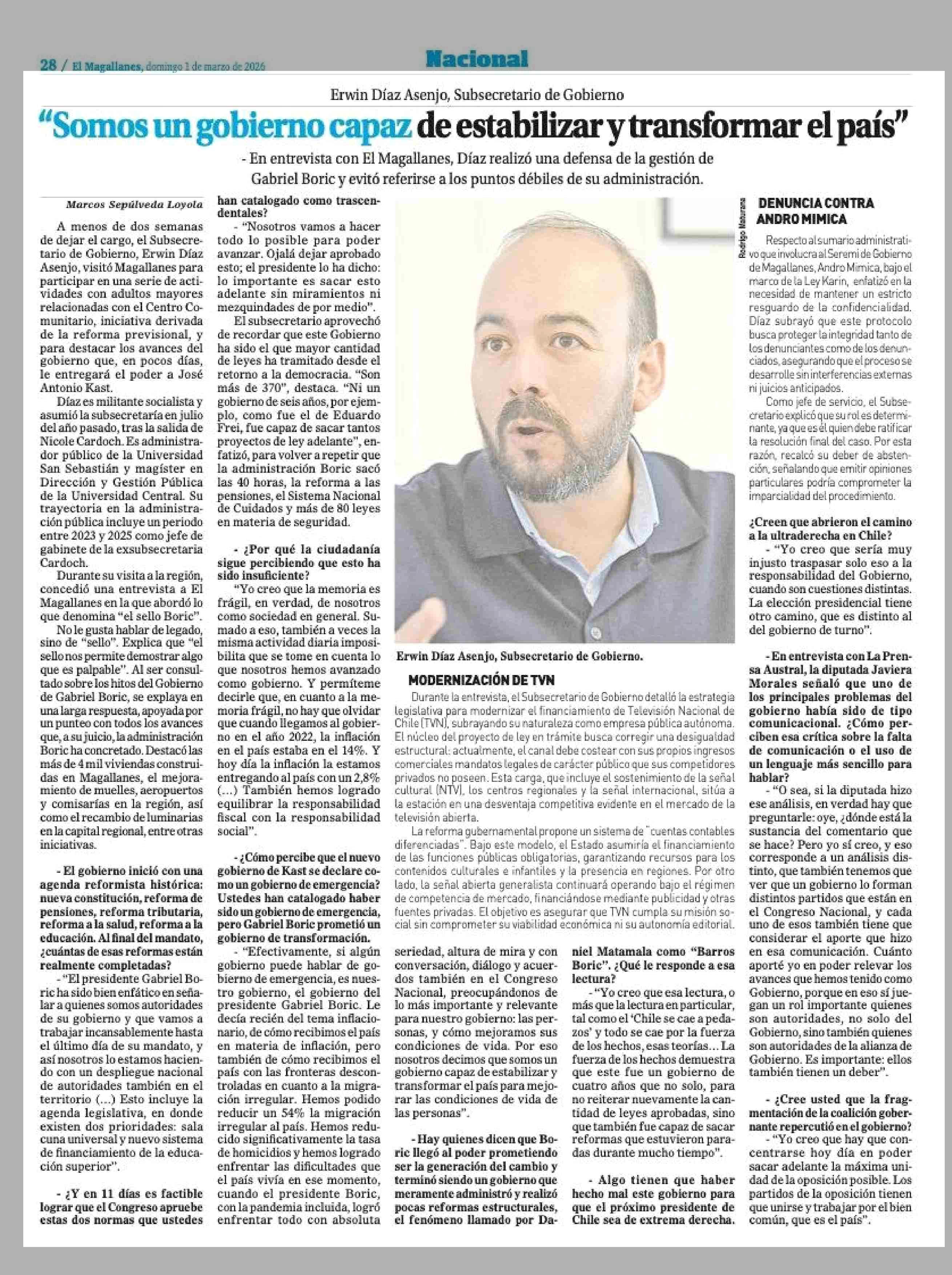 “Somos un gobierno capaz de estabilizar y transformar el país” 01-03-2026 El Magallanes |