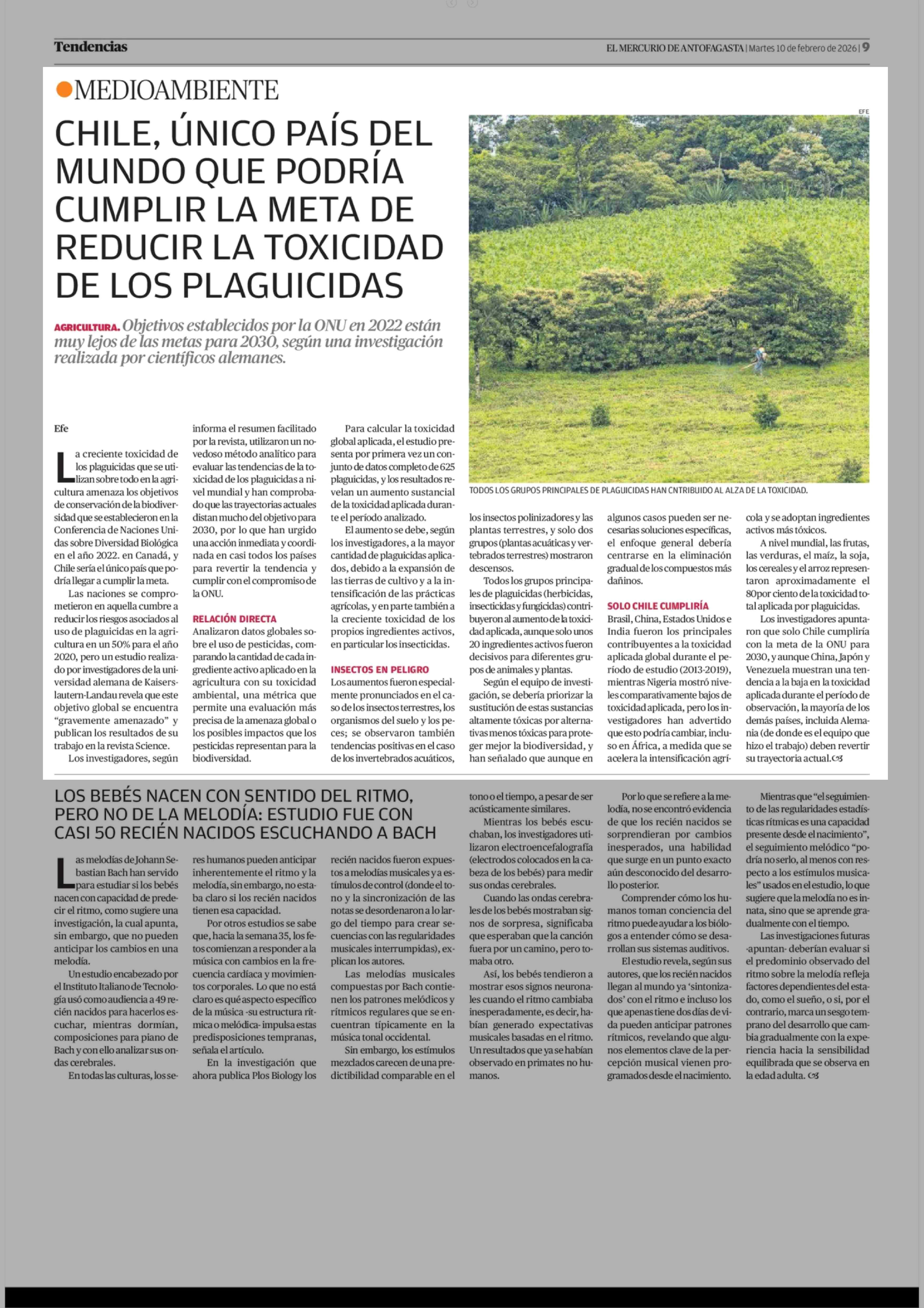 Título: CHILE, ÚNICO PAÍS DEL MUNDO QUE PODRÍA CUMPLIR LA META DE REDUCIR LA TOXICIDAD DE LOS PLAGUICIDAS